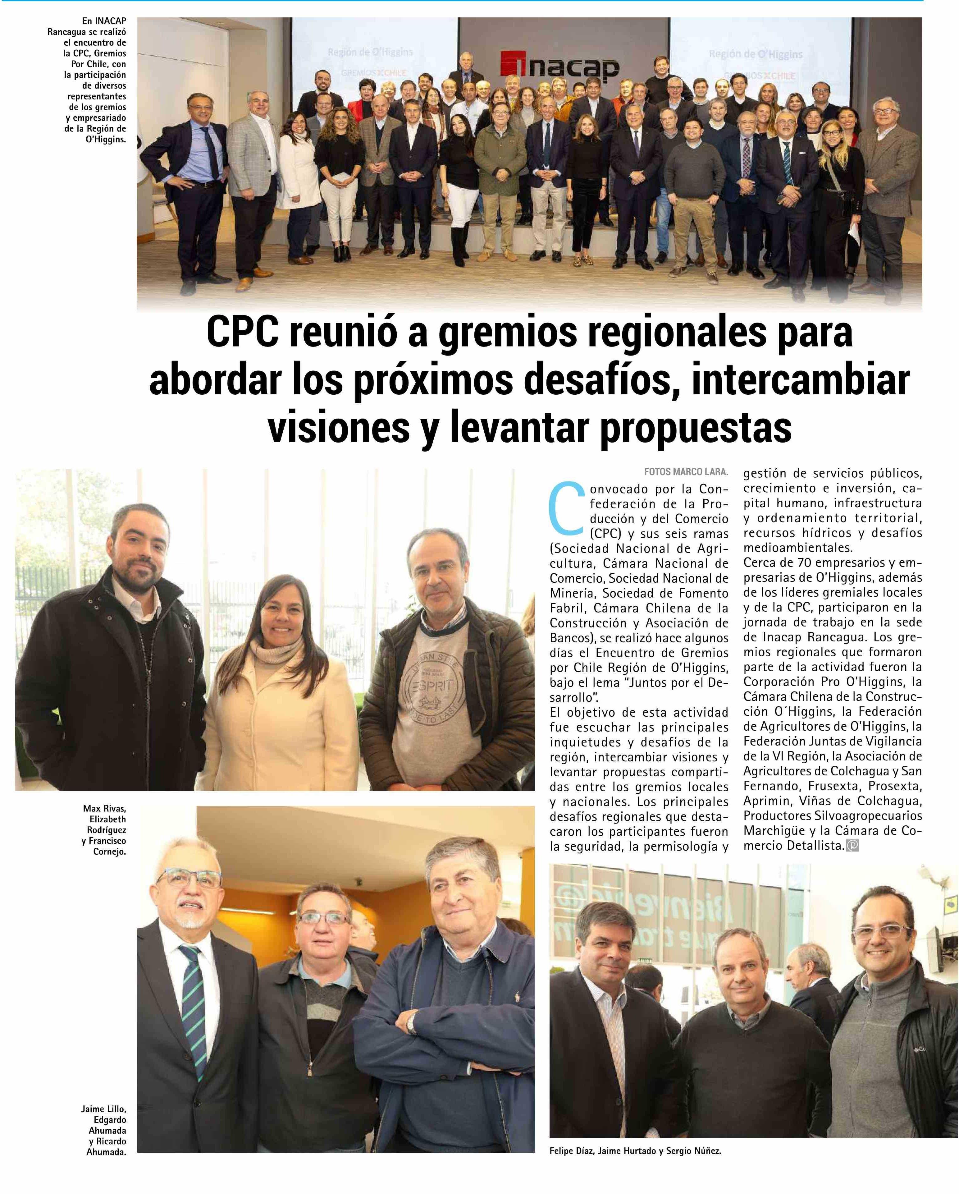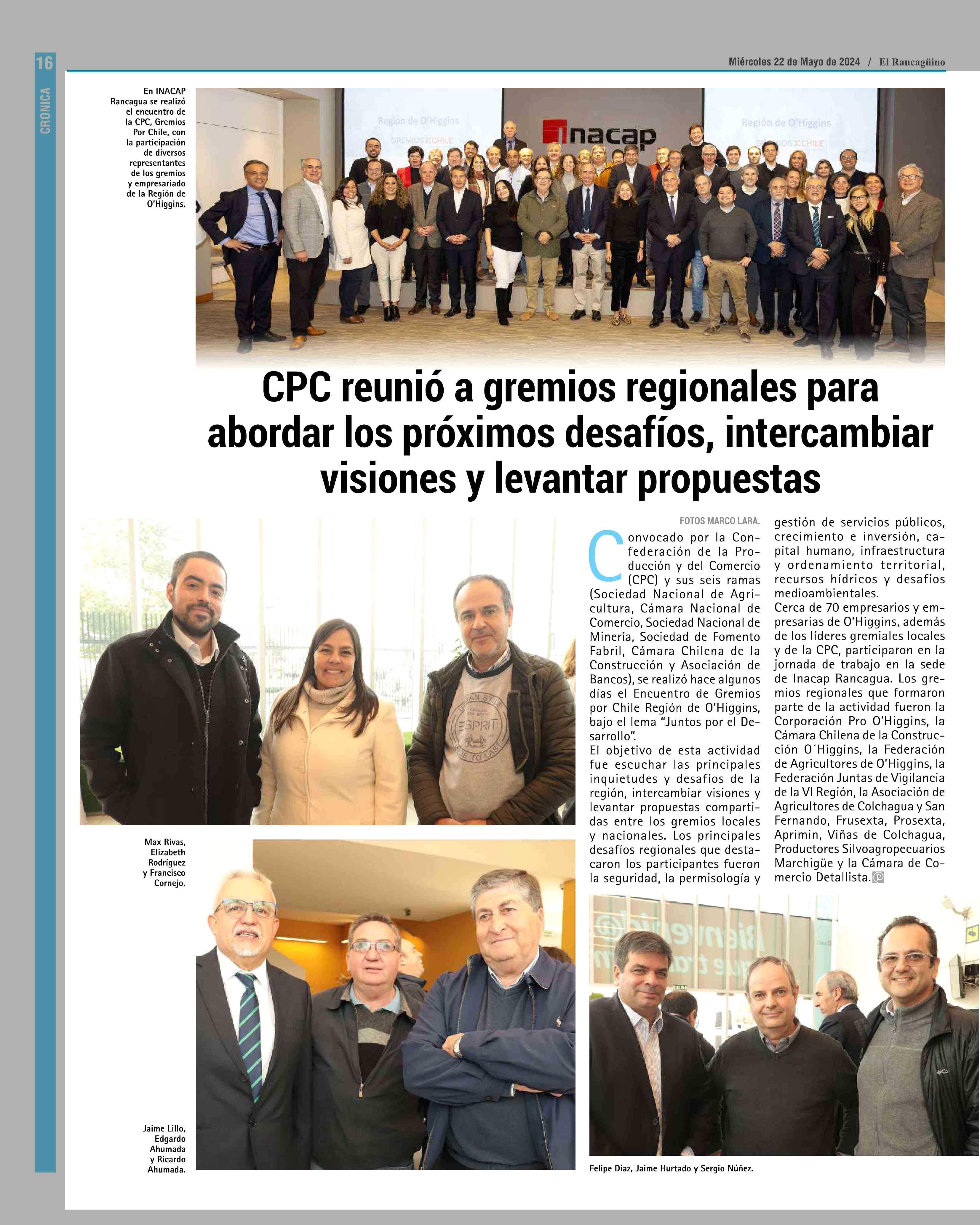 CPC reunió a gremios regionales para abordar los próximos desafíos, intercambiar visiones y levantar propuestas 22-05-2024 El Rancagüino |