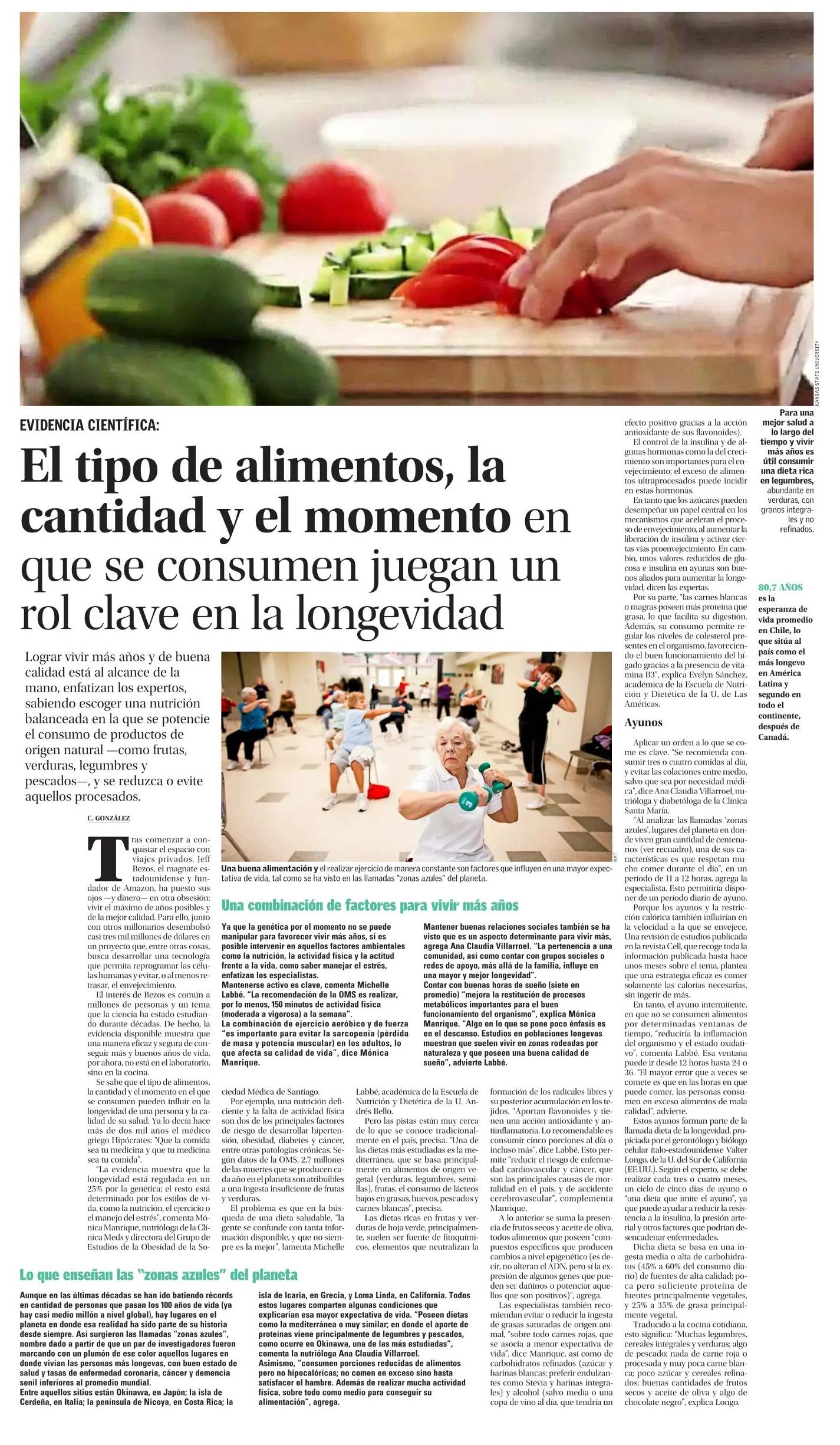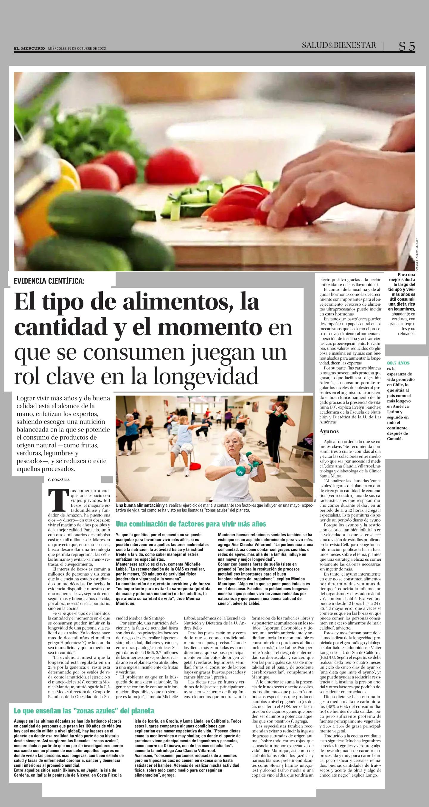 El tipo de alimentos, la cantidad y el momento en que se consumen juegan un rol clave en la longevidad 19-10-2022 El Mercurio |