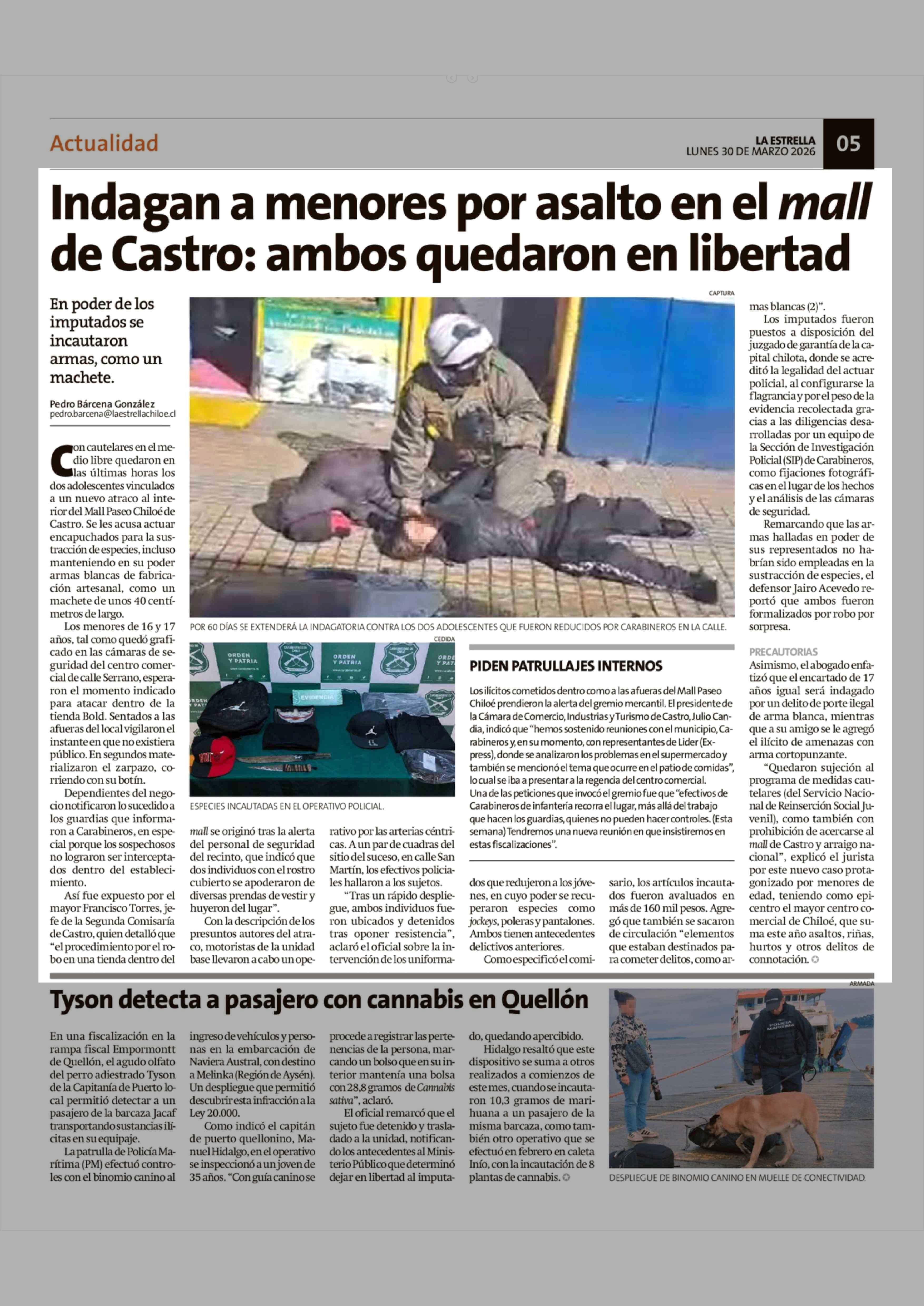 Indagan a menores por asalto en el mall de Castro: ambos quedaron en libertad 30-03-2026 La Estrella de Chiloé |