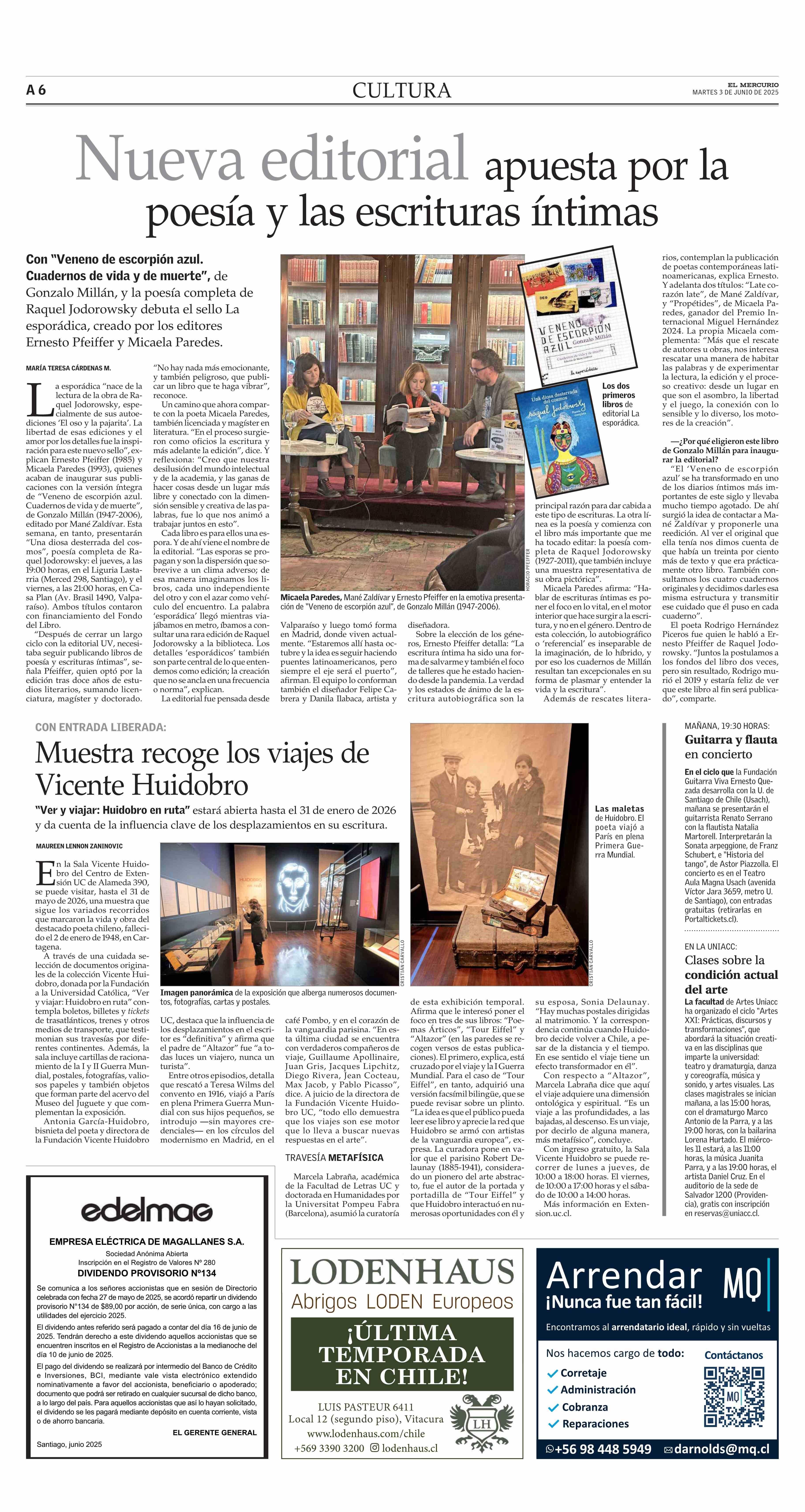 Muestra recoge los viajes de Vicente Huidobro 03-06-2025 El Mercurio |