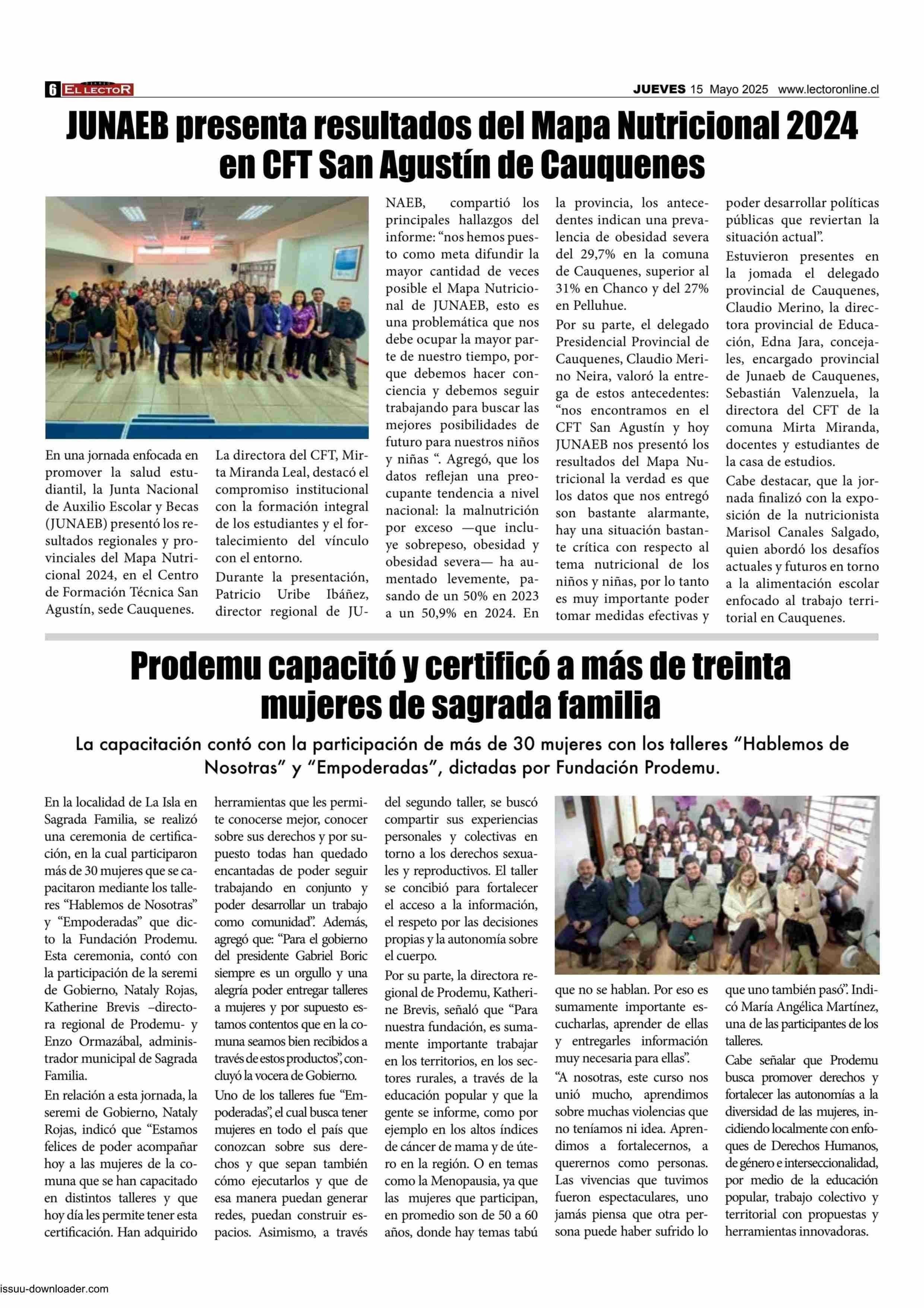 JUNAEB presenta resultados del Mapa Nutricional 2024 en CFT San Agustín de Cauquenes 15-05-2025 El Lector |