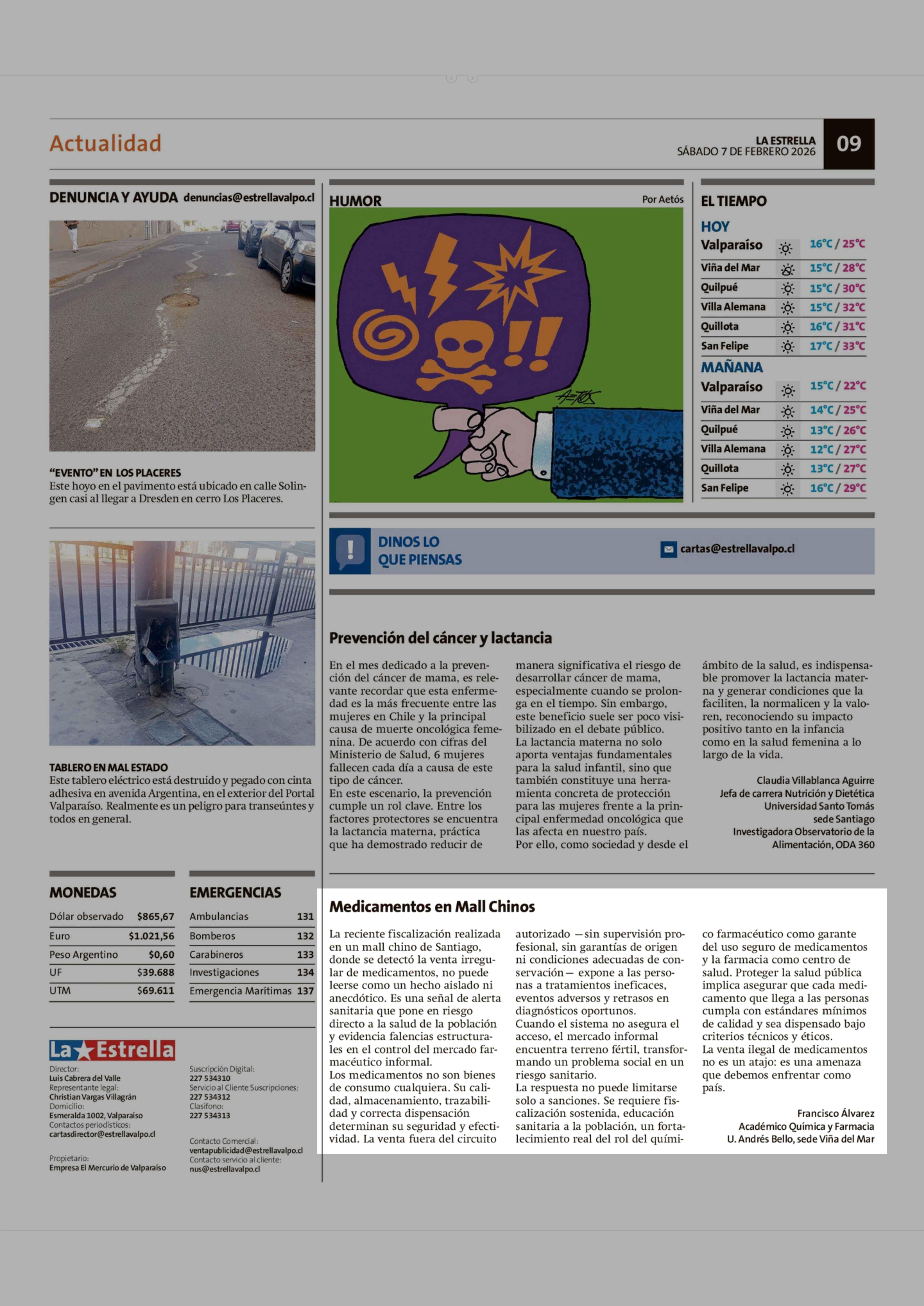 Columnas de Opinión: Medicamentos en Mall Chinos 07-02-2026 La Estrella de Valparaíso |
