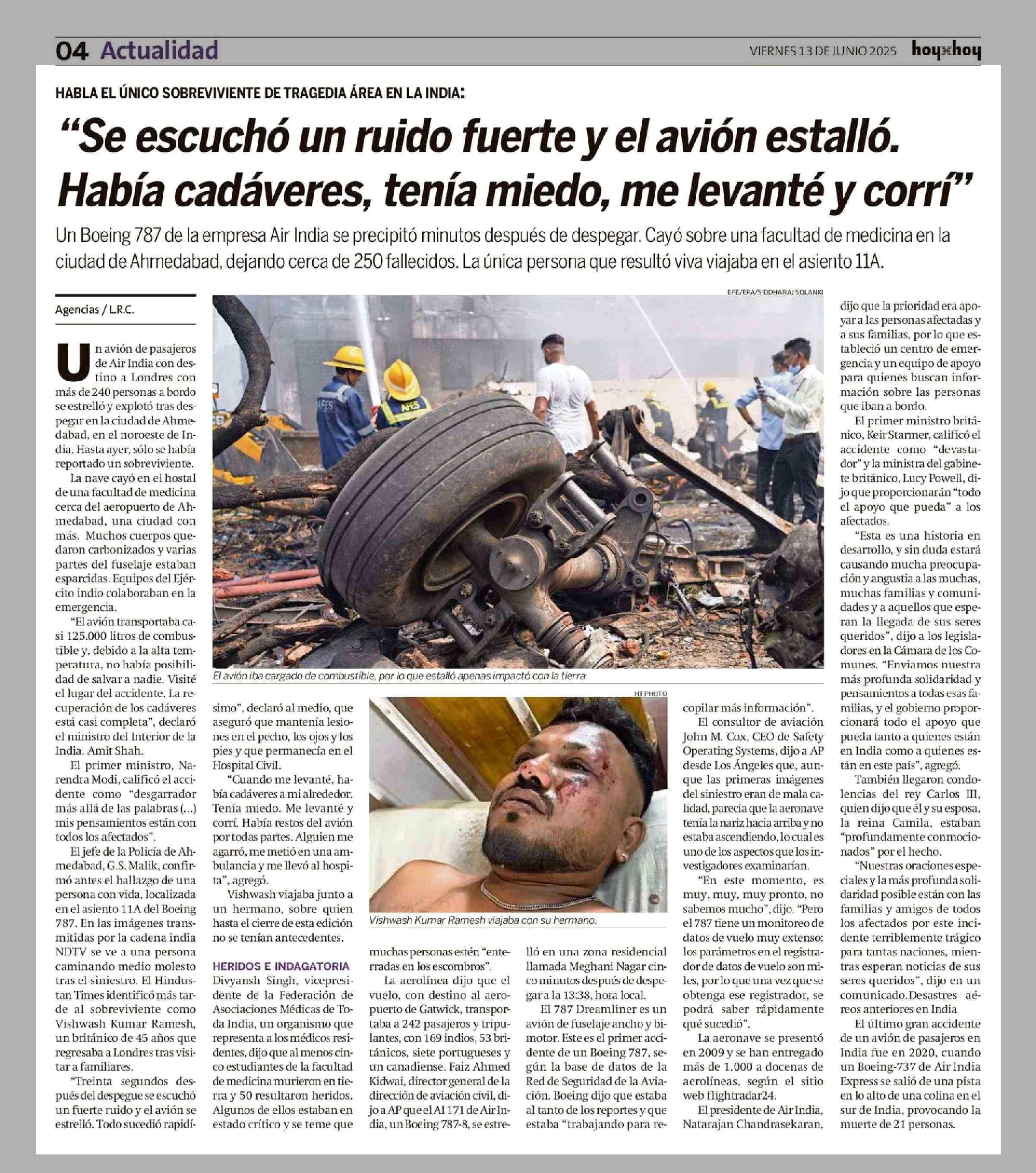 | Título: | "Se escuchó un ruido fuerte y el avión estalló. Había cadáveres, tenía miedo, me levanté y corrí" |