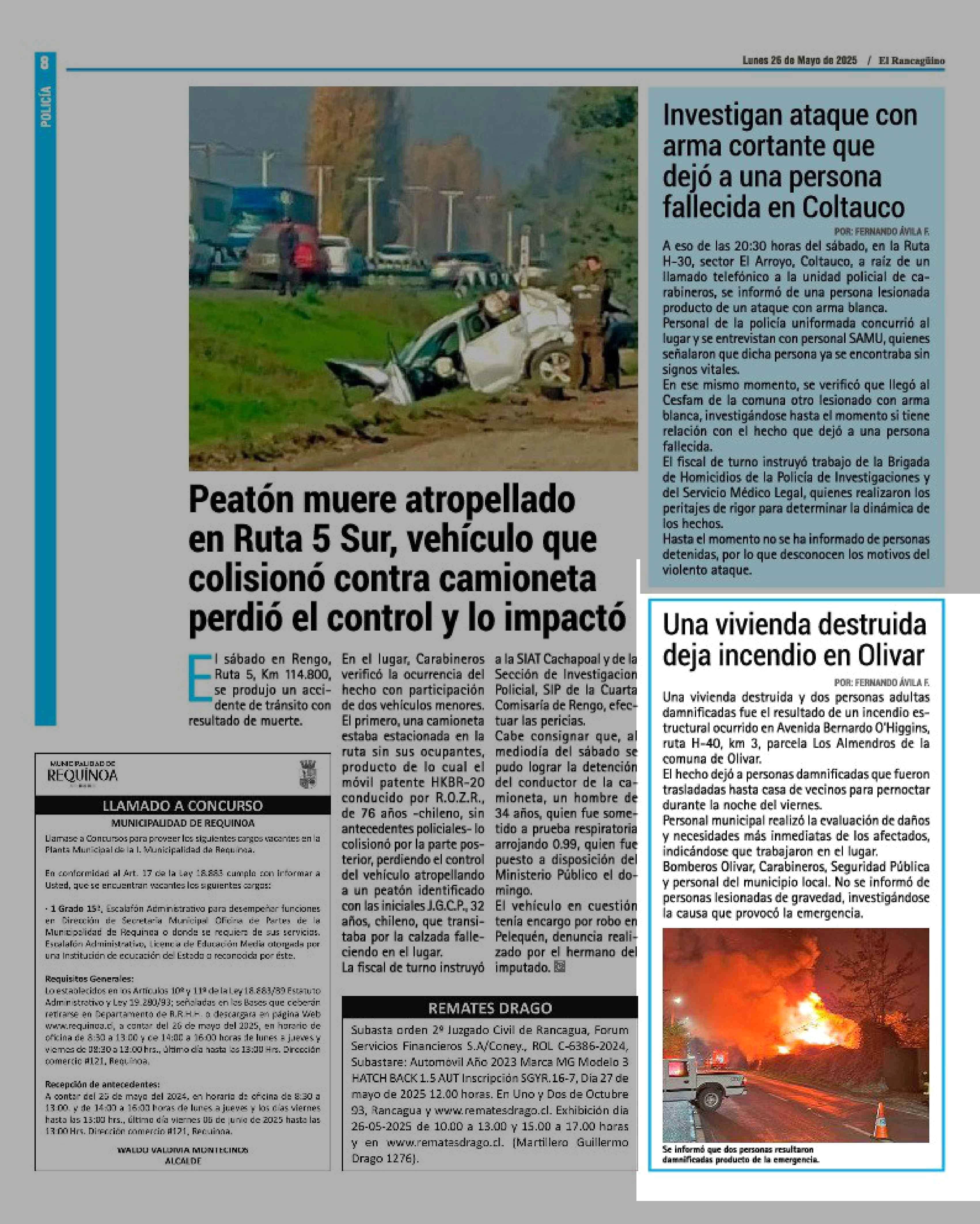 | Fecha: | 26-05-2025 | Sector: | Noticia general | Región: | Región del Libertador General Bernardo O'Higgins |