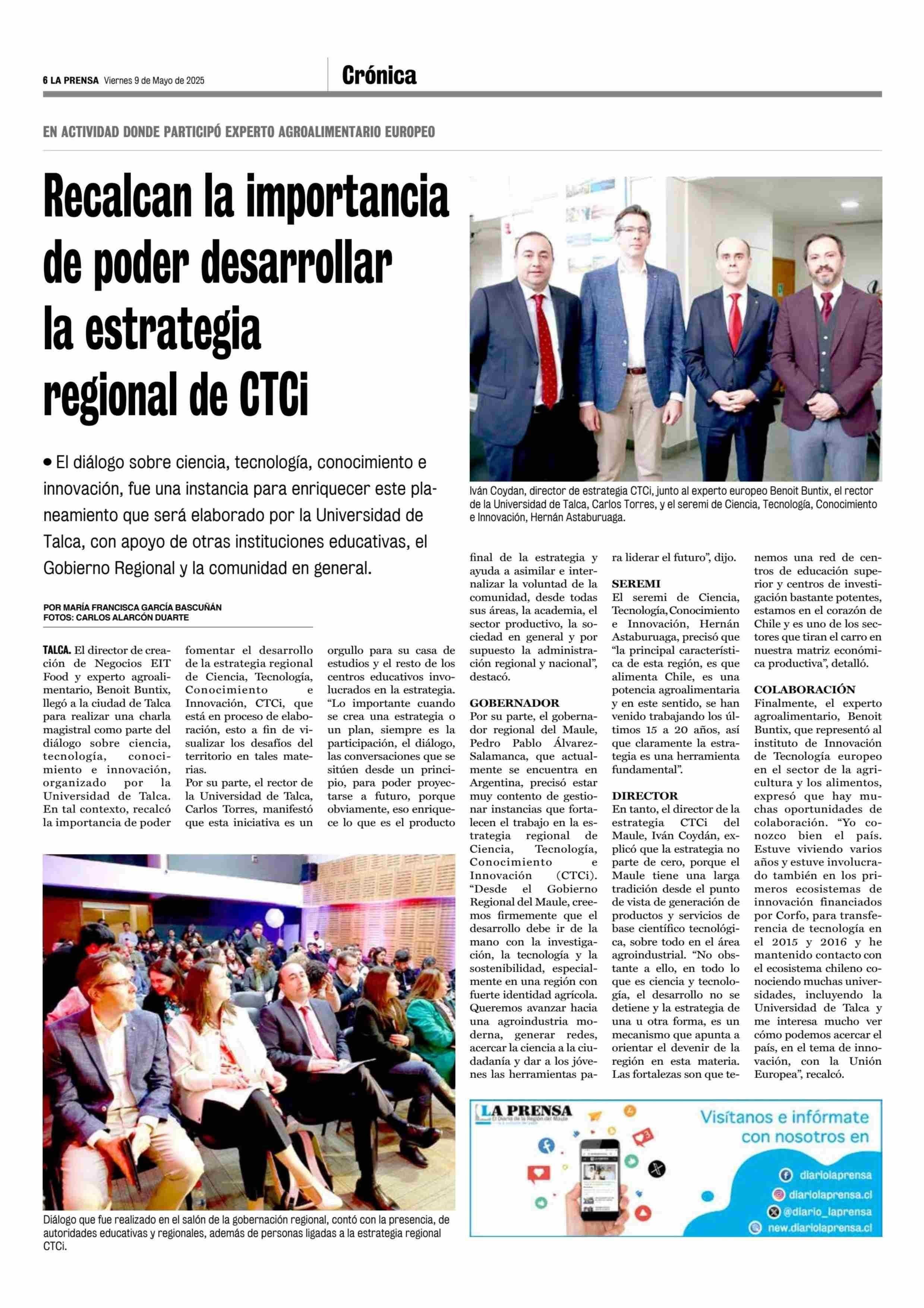 Recalcan la importancia de poder desarrollar la estrategia regional de CTCi 09-05-2025 La Prensa de Curicó |