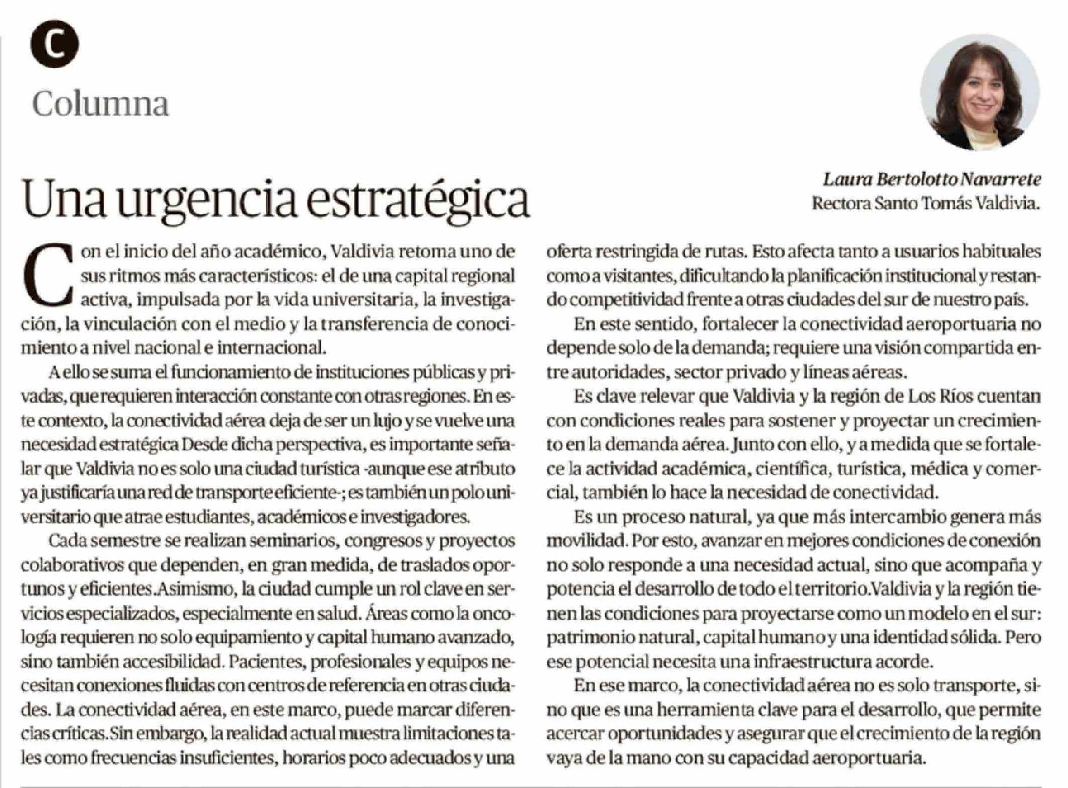 Columnas de Opinión: Una urgencia estratégica 14-04-2026 Diario Austral Región de Los Ríos |