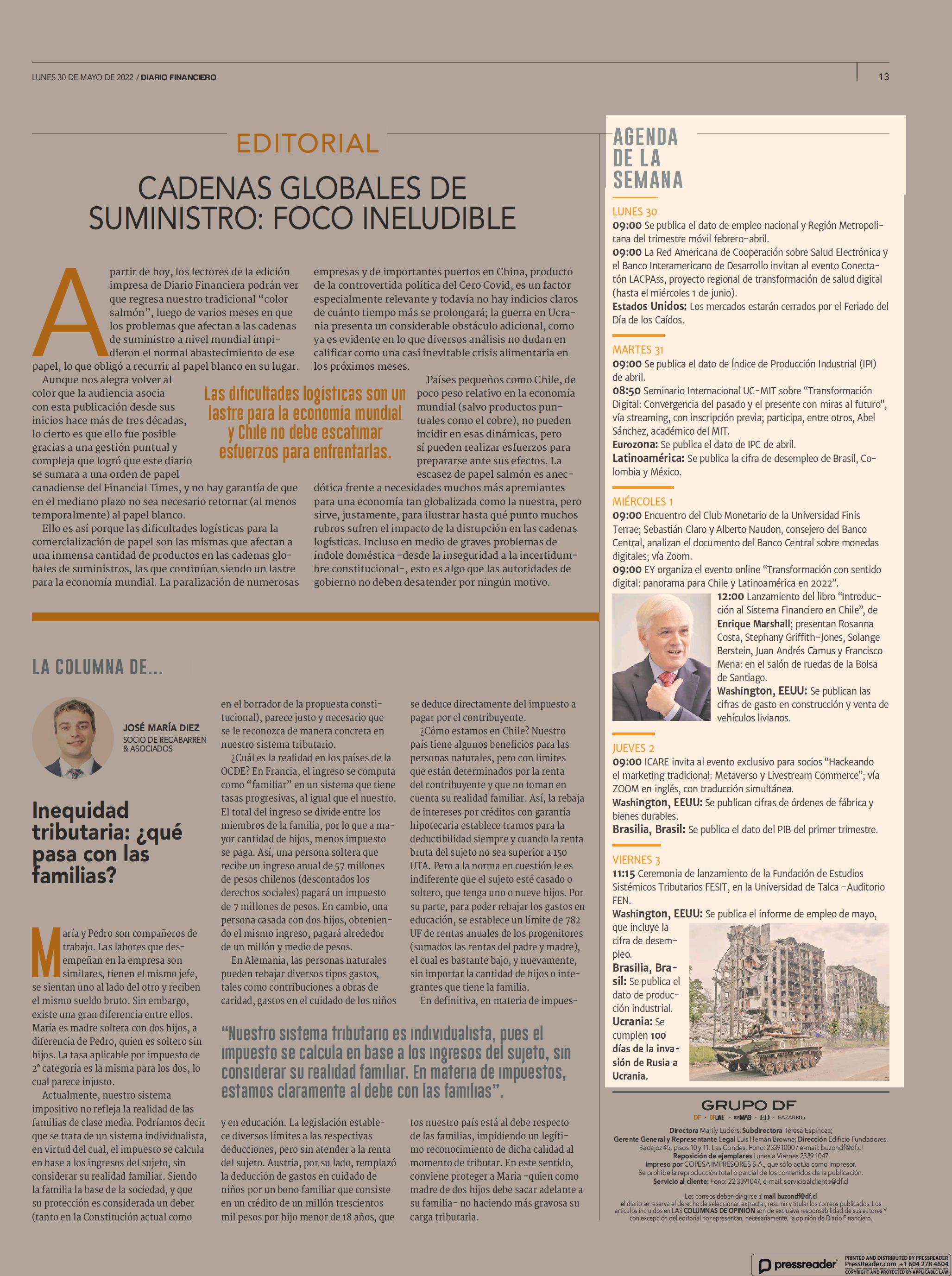 AGENDA DE LA SEMANA 30-05-2022 Diario Financiero |