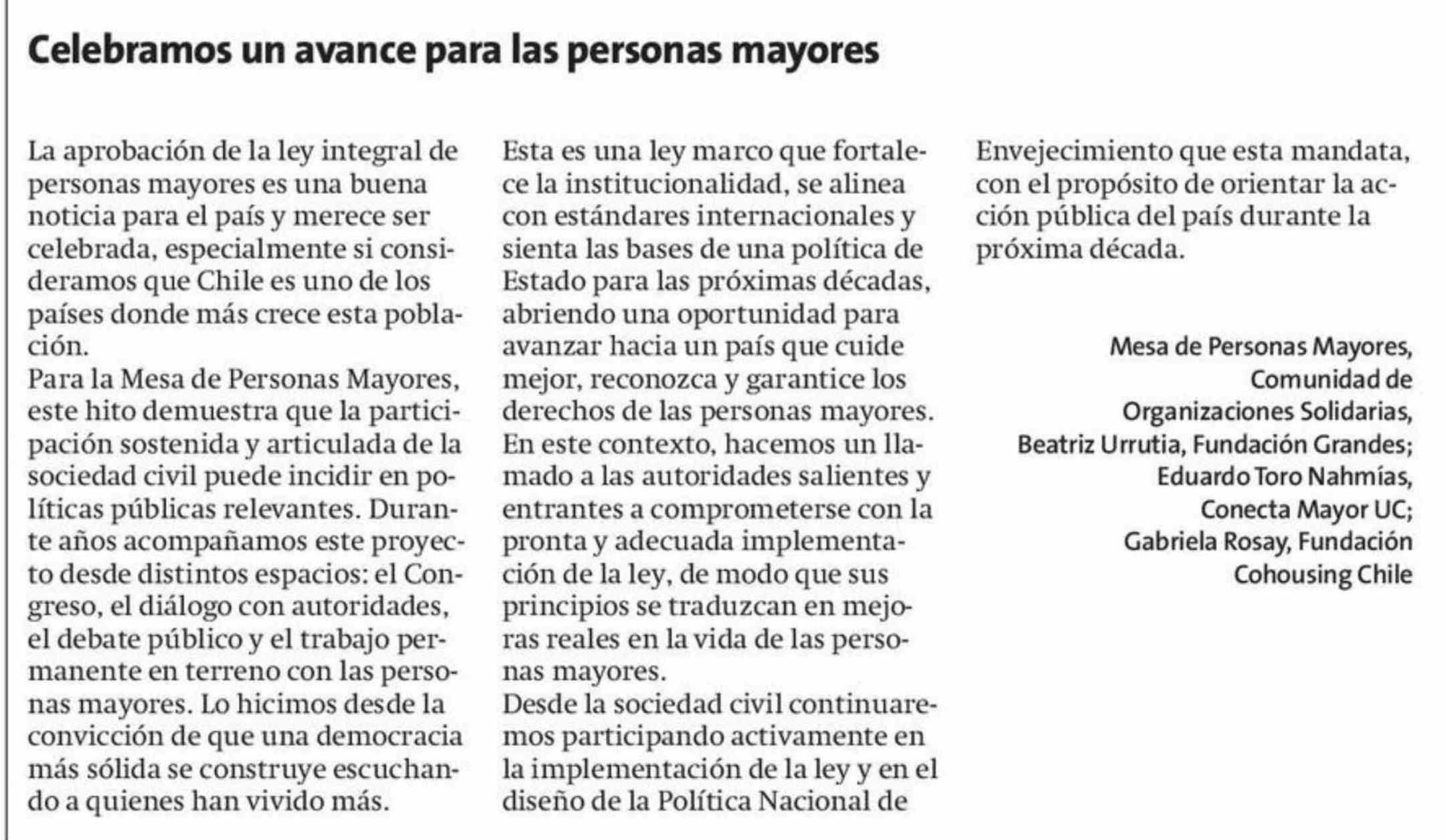 Título: Columnas de Opinión: Celebramos un avance para las personas mayores