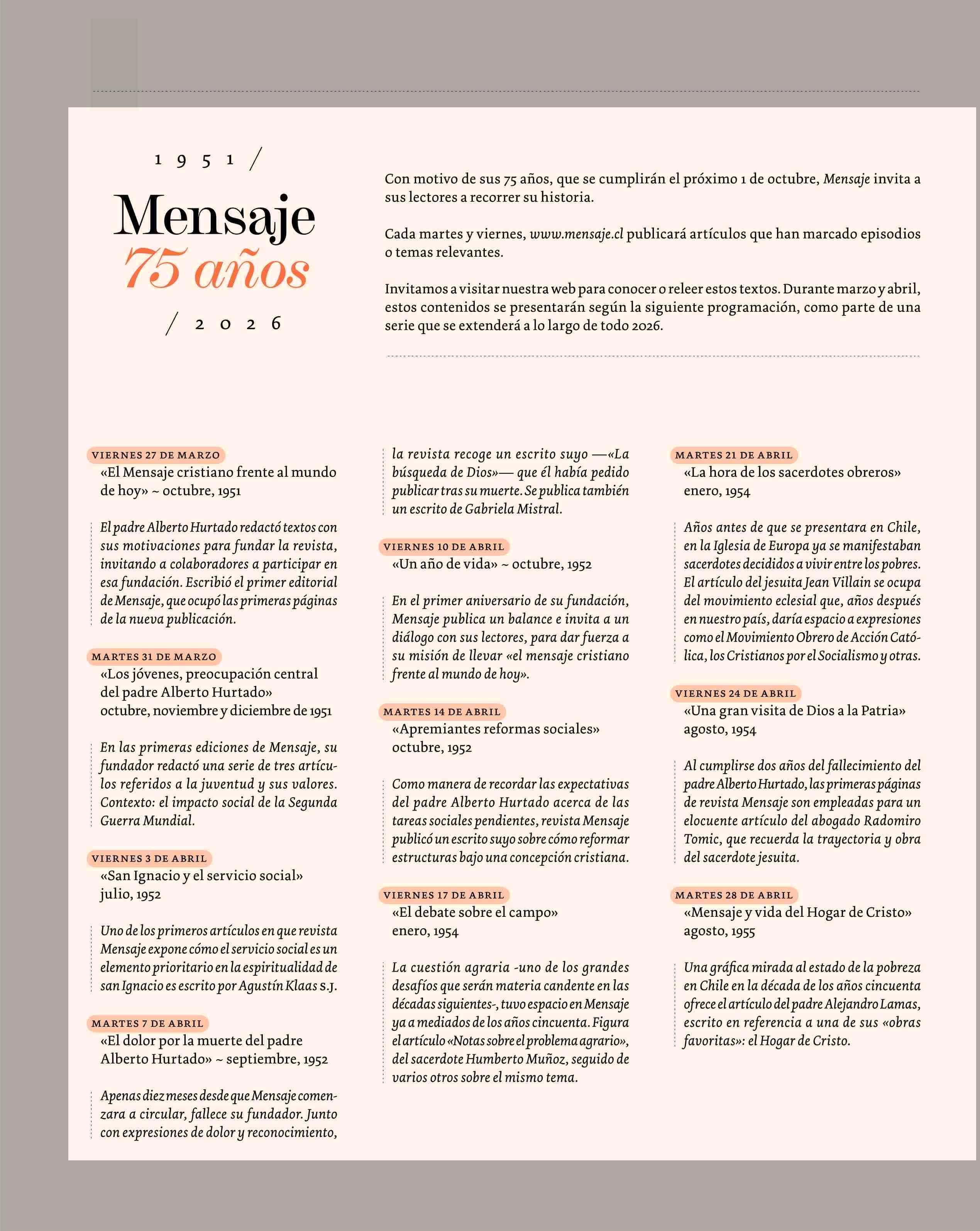 Mensaje 75 años 30-03-2026 Revista Mensaje |