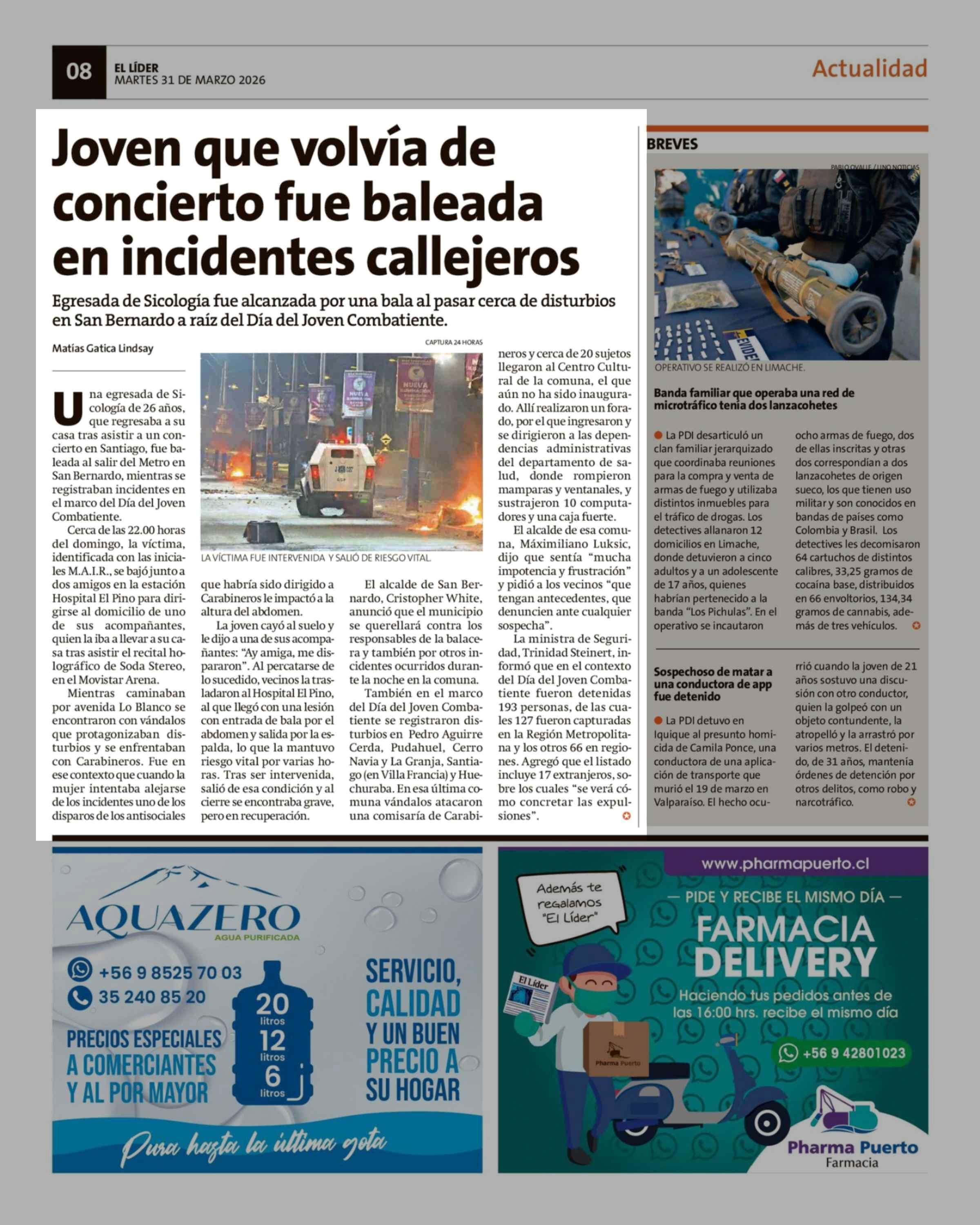 Título: Joven que volvía de concierto fue baleada en incidentes callejeros