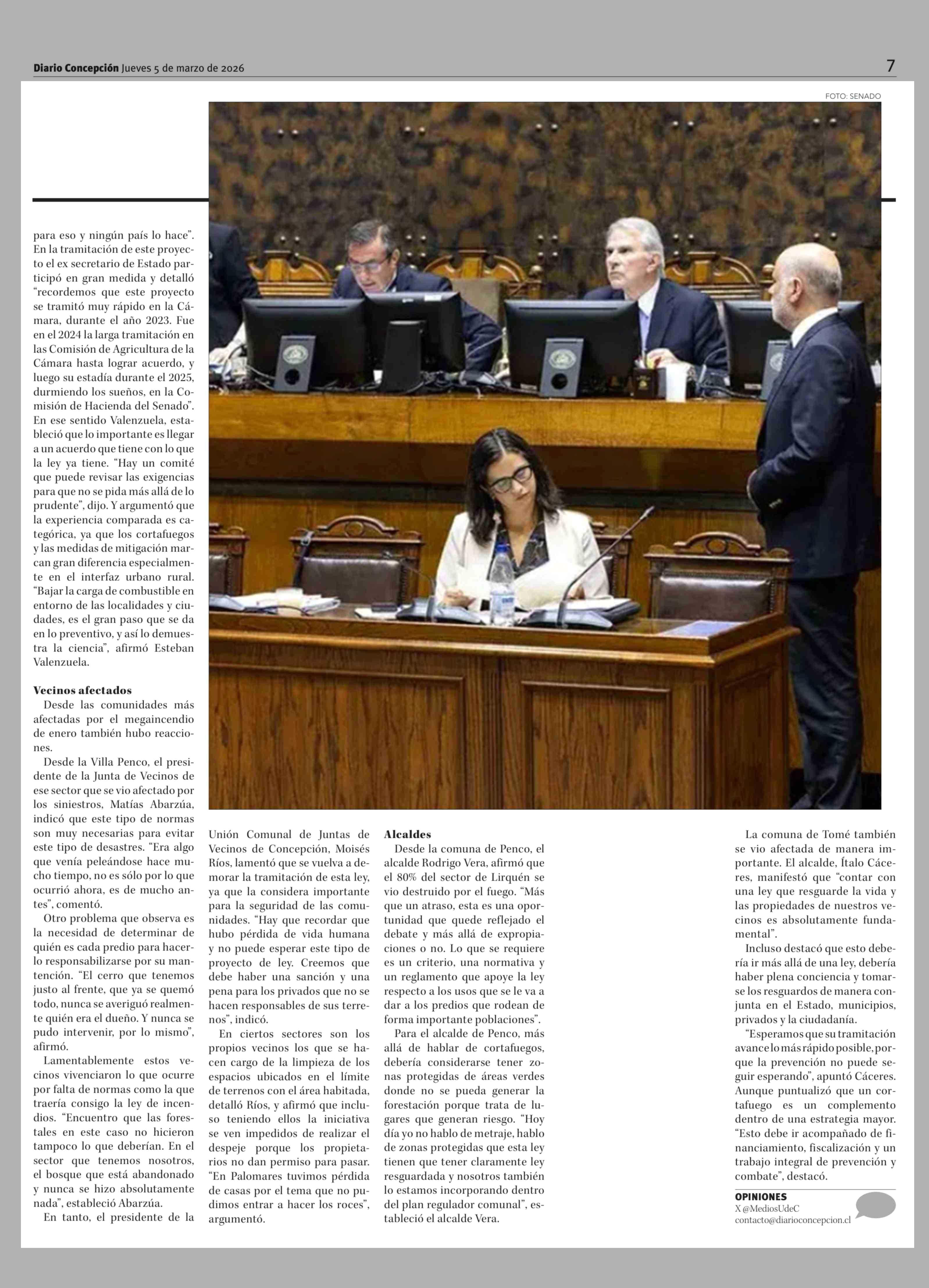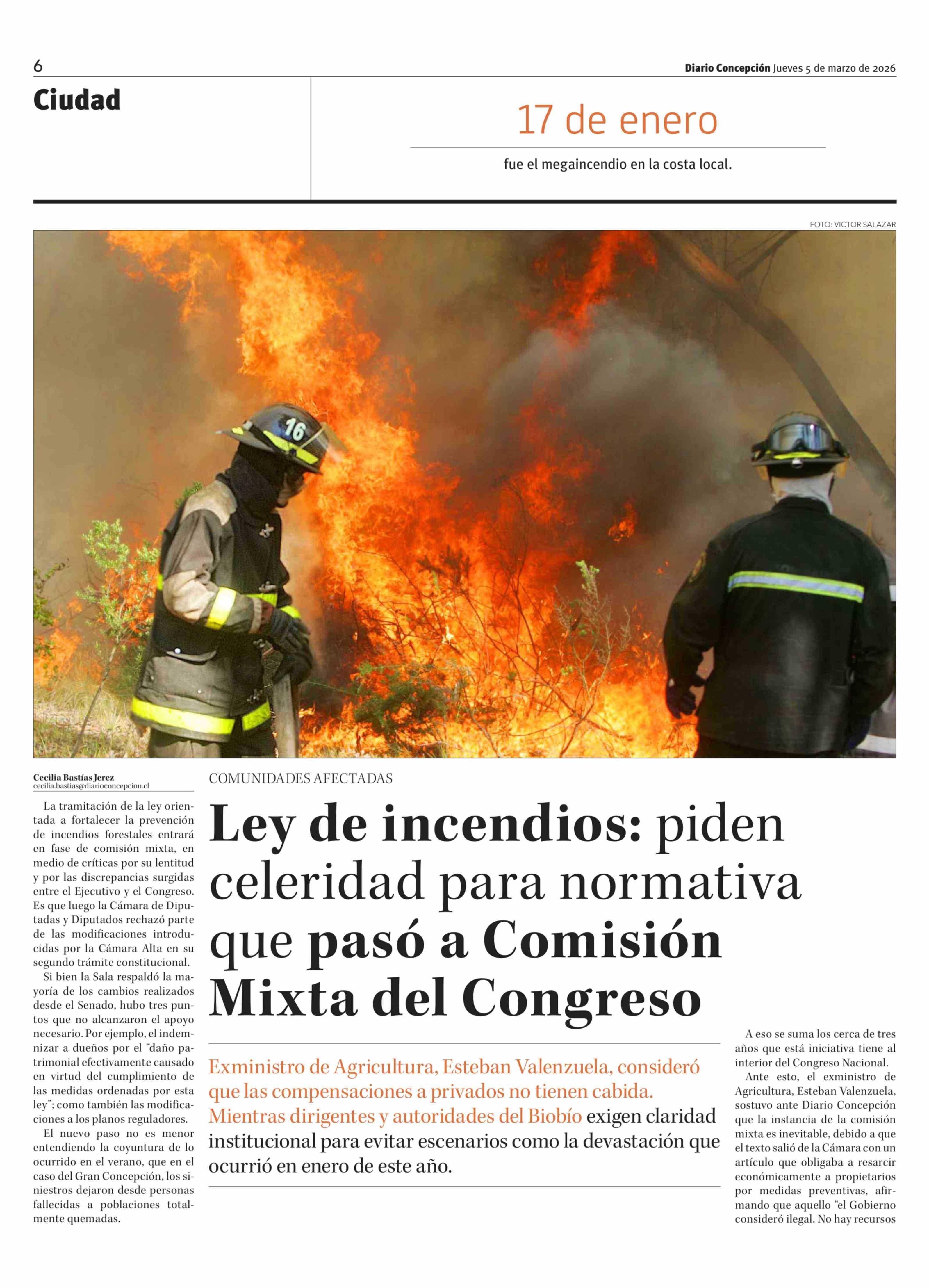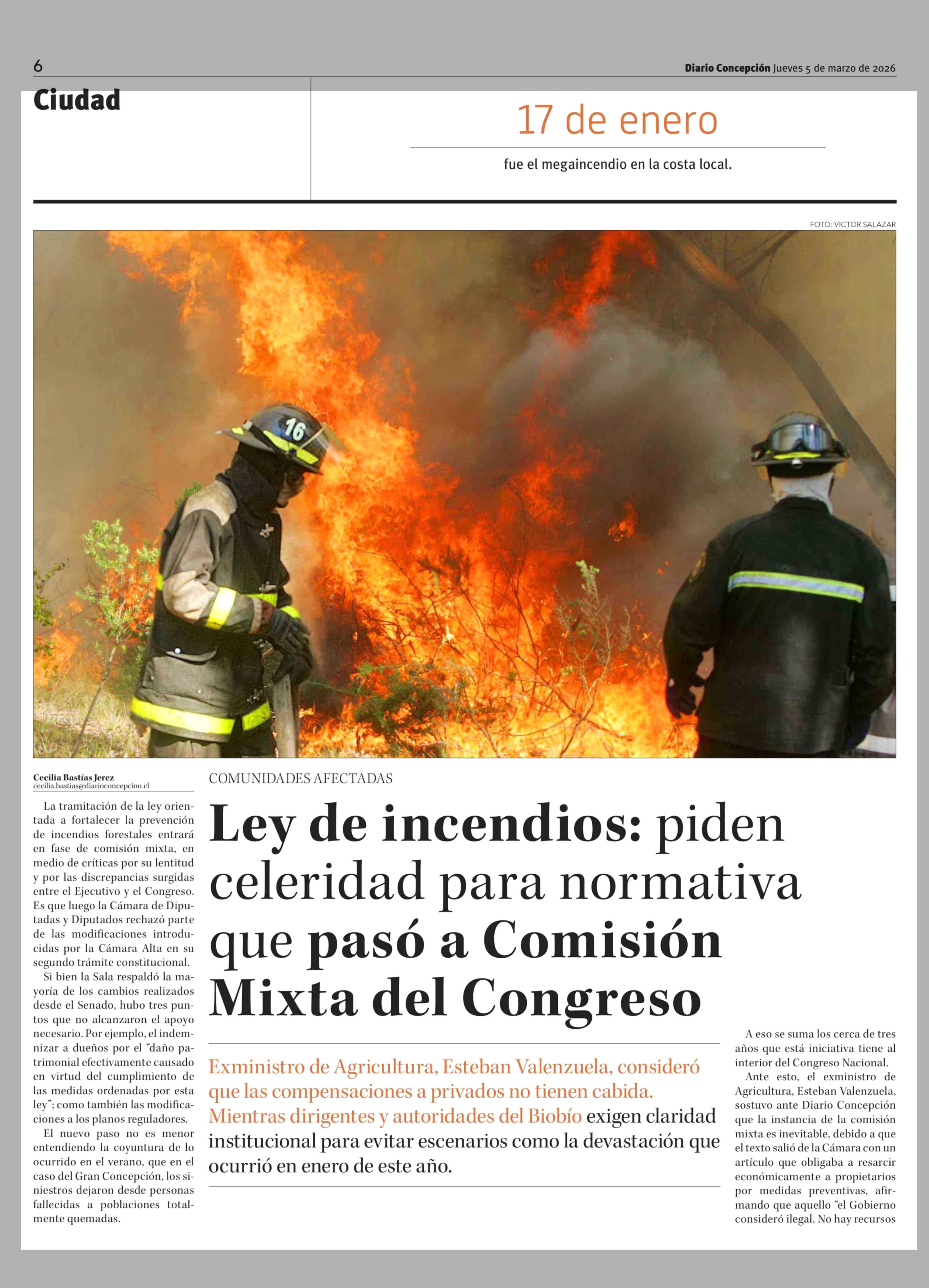 Ley de incendios: piden celeridad para normativa que pasó a Comisión Mixta del Congreso 05-03-2026 Diario Concepción |