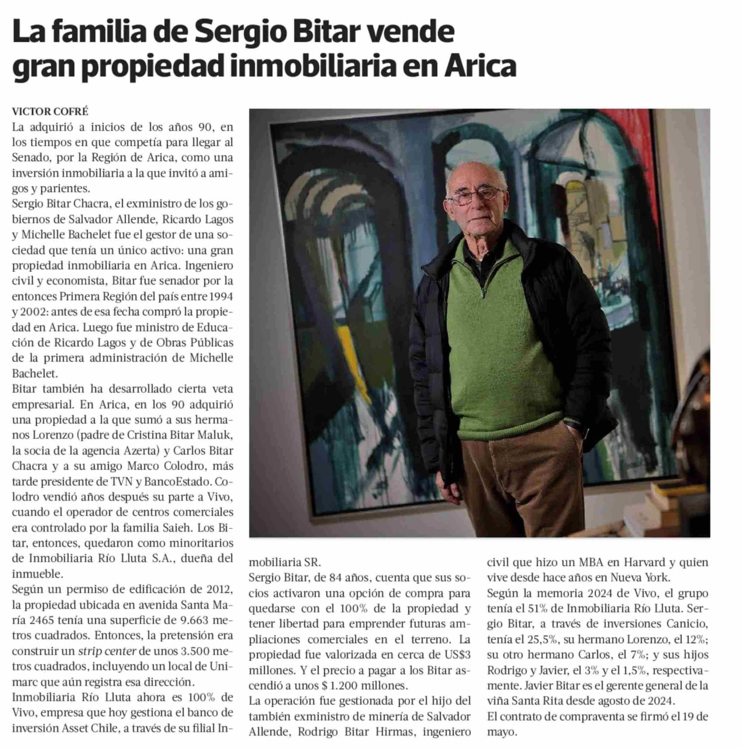 Título: La familia de Sergio Bitar vende gran propiedad inmobiliaria en Arica