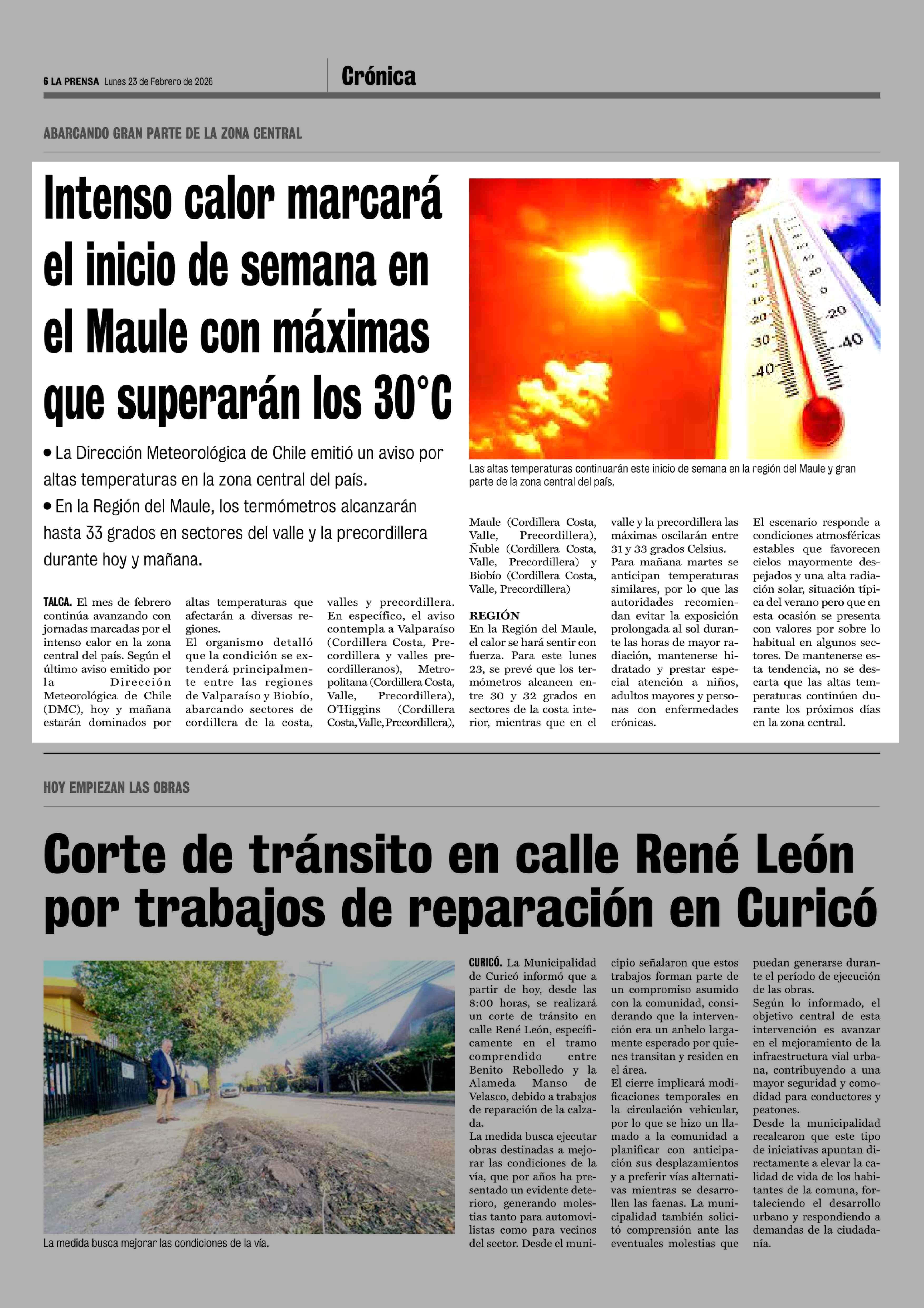 Fecha: 23-02-2026 Sector: Noticia general Región: Región del Maule