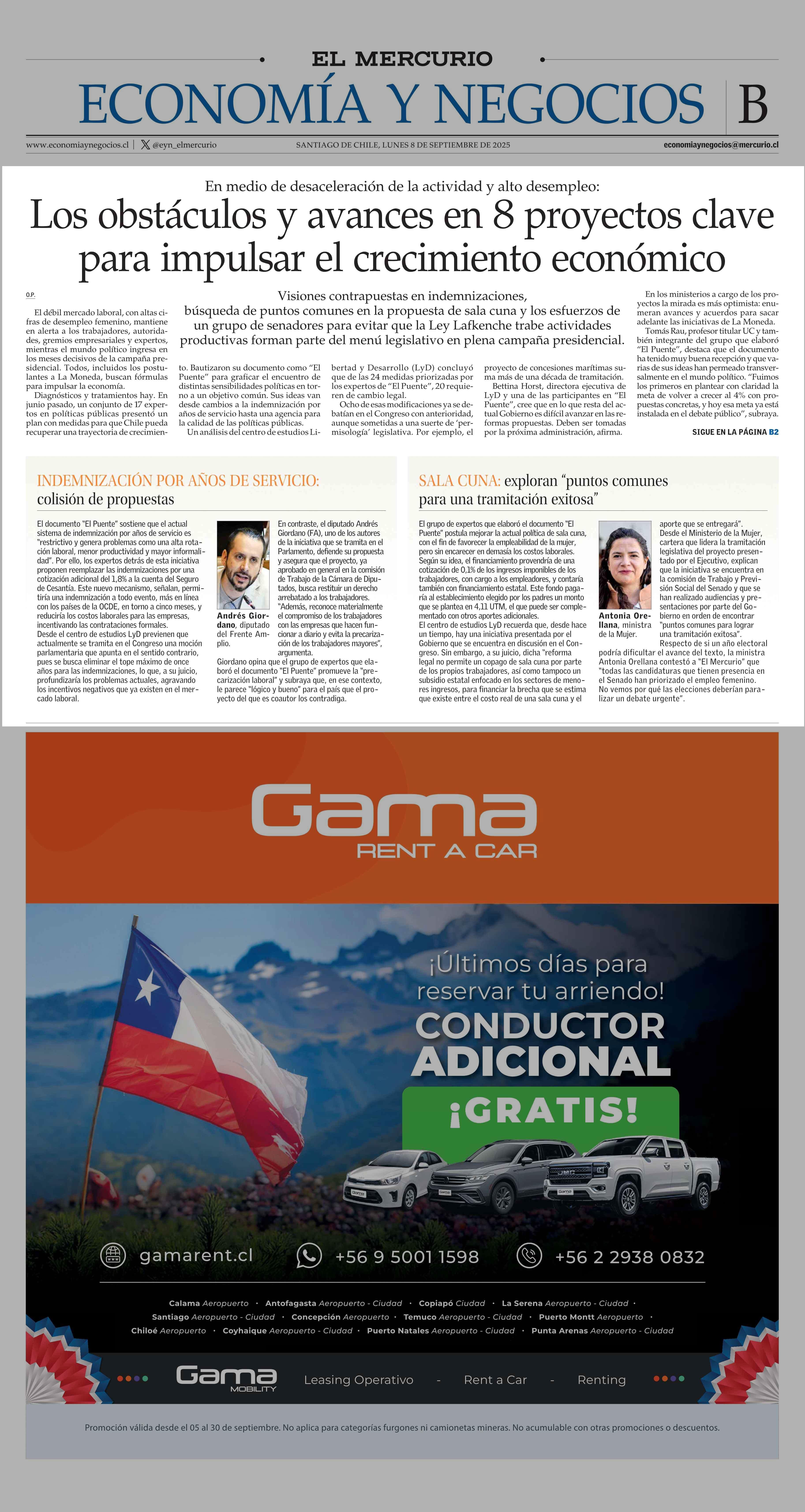 Los obstáculos y avances en 8 proyectos clave para impulsar el crecimiento económico 08-09-2025 El Mercurio |