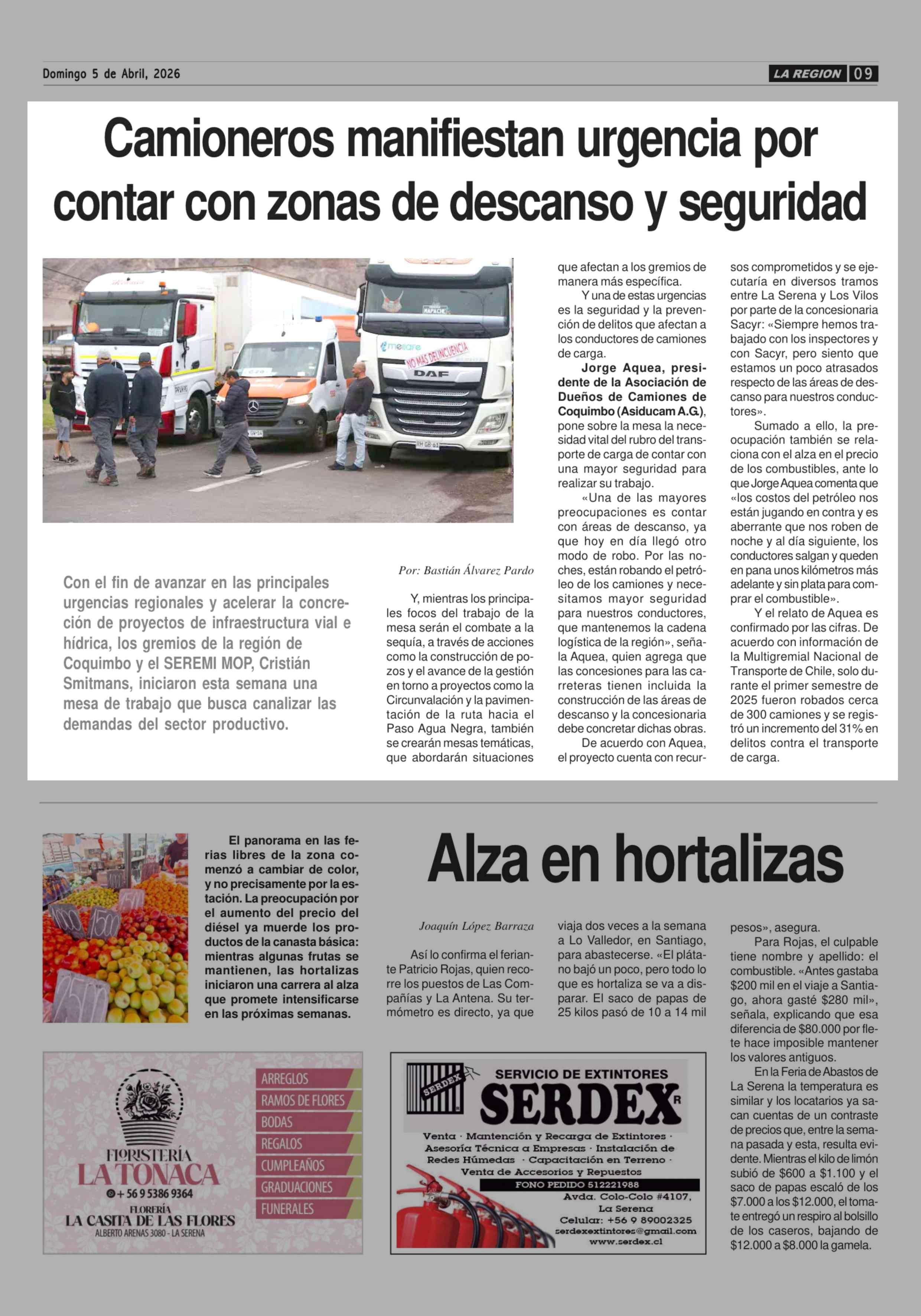 Camioneros manifiestan urgencia por contar con zonas de descanso y seguridad 05-04-2026 Diario la Región |