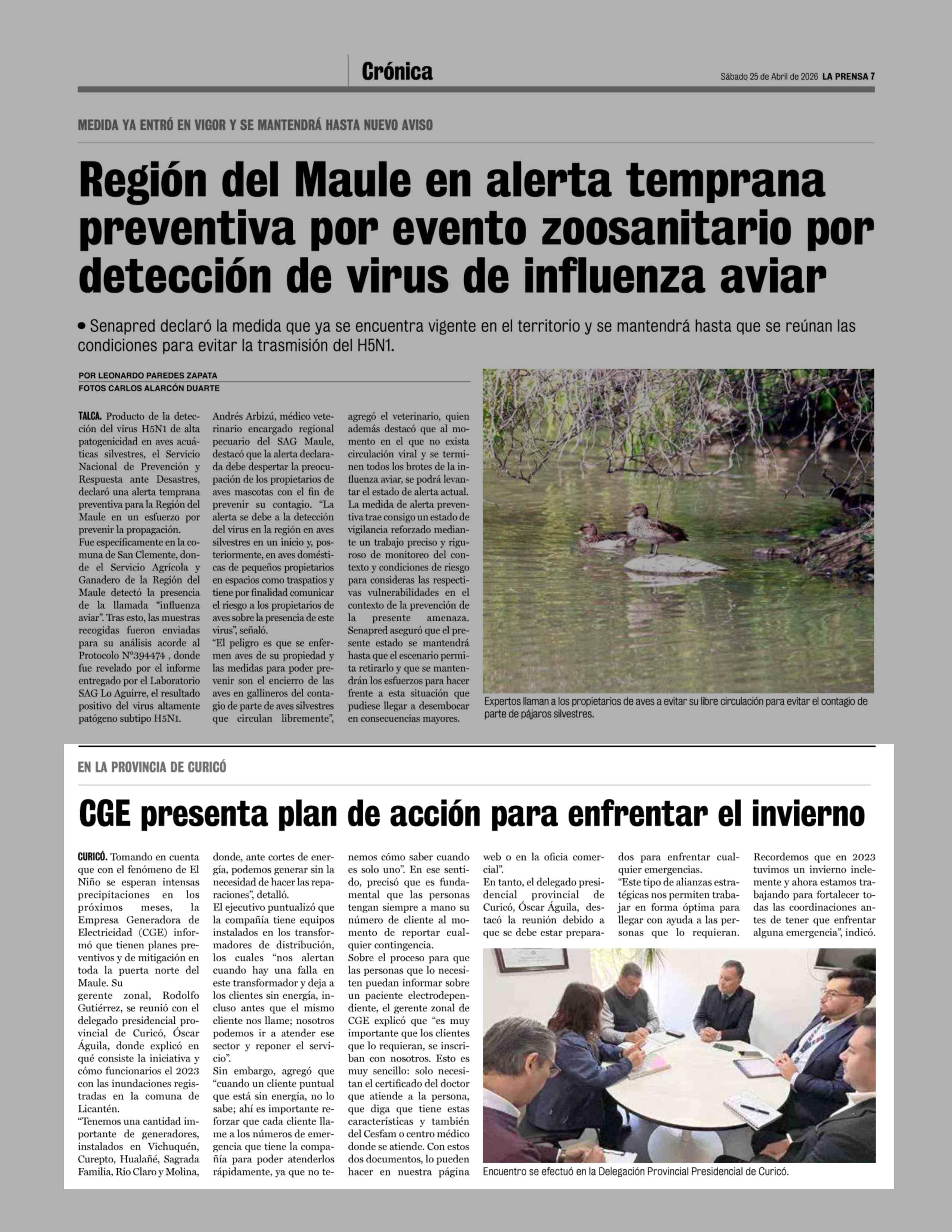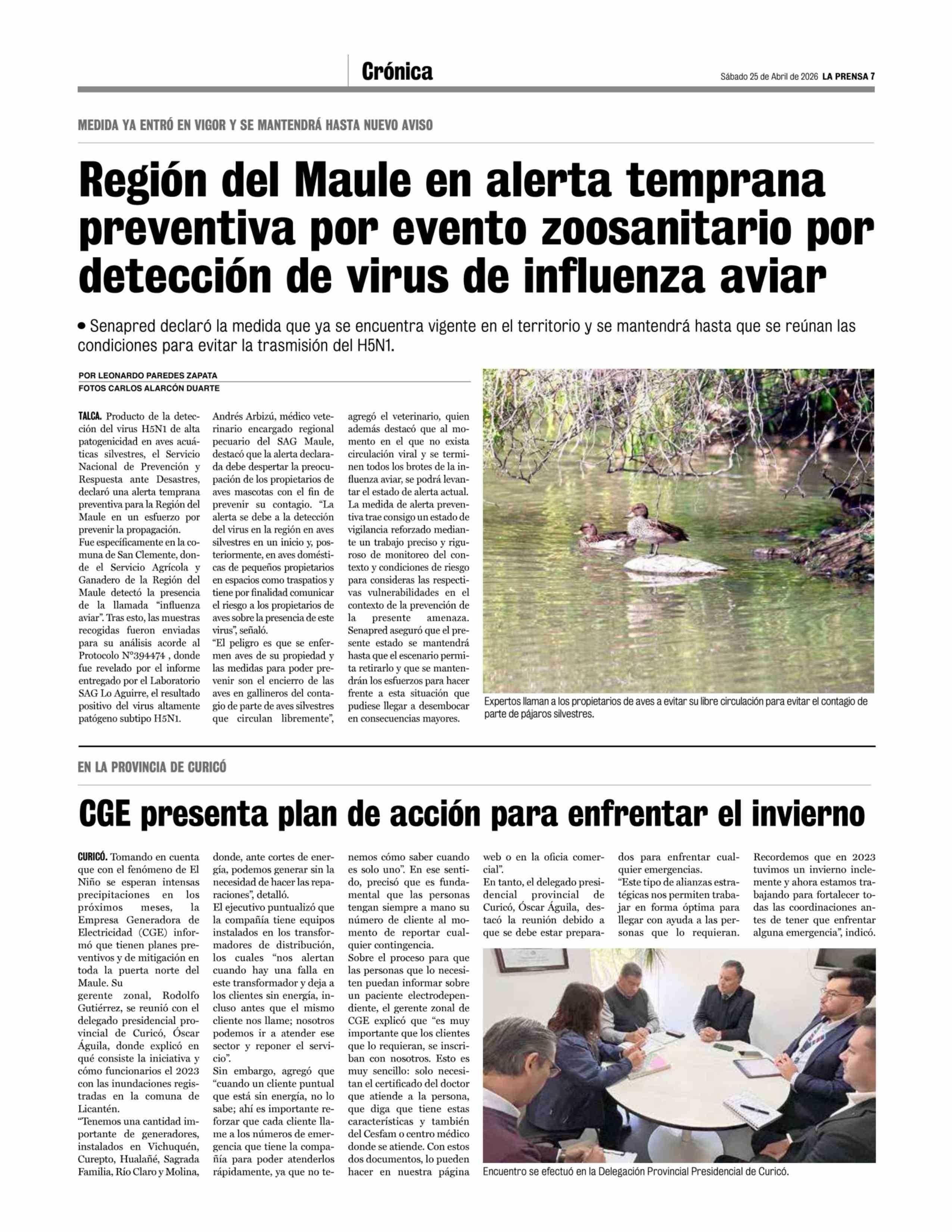 Fecha: 25-04-2026 Sector: Noticia general Región: Región del Maule