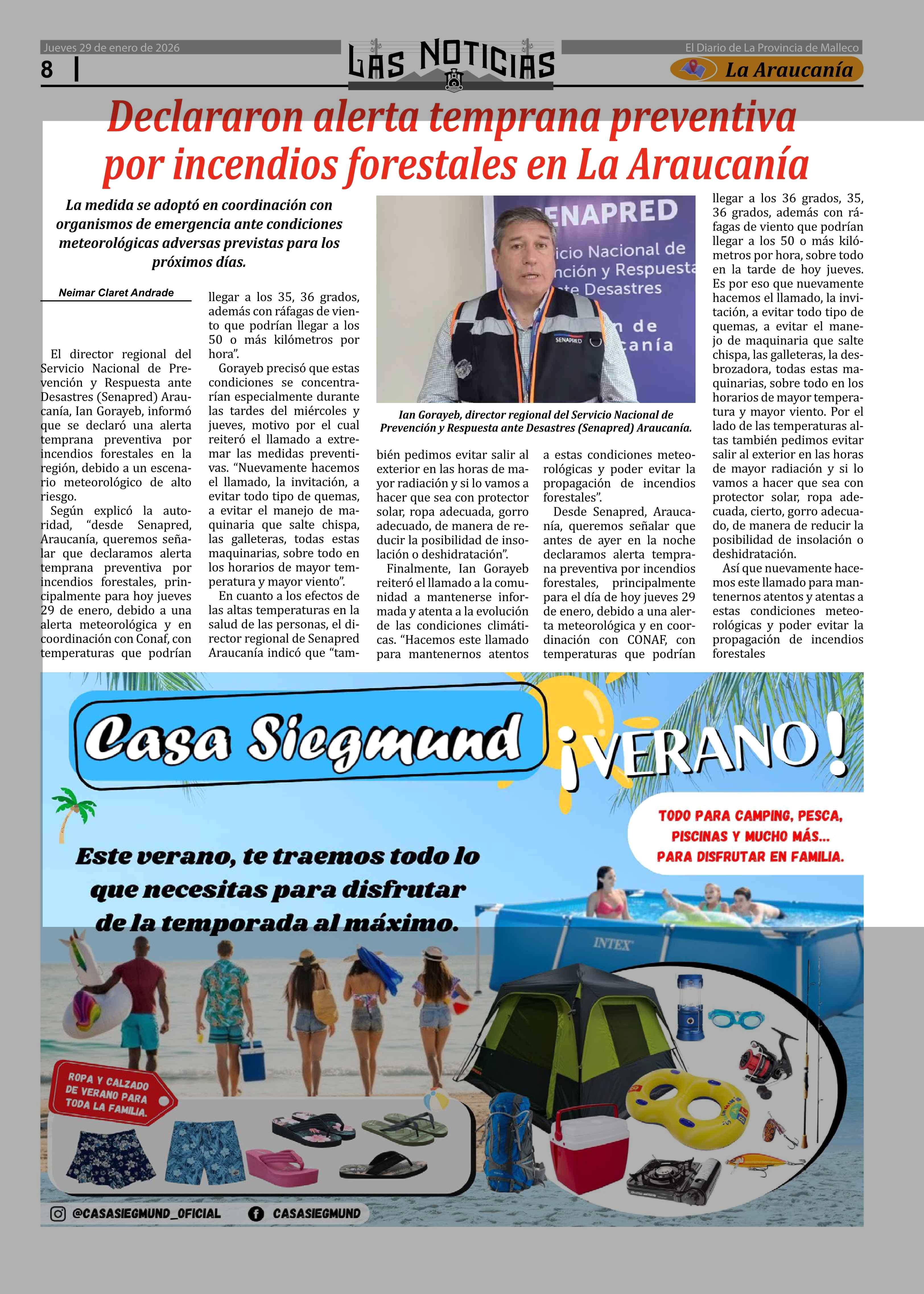 Fecha: 29-01-2026 Sector: Noticia general Región: Región de la Araucanía