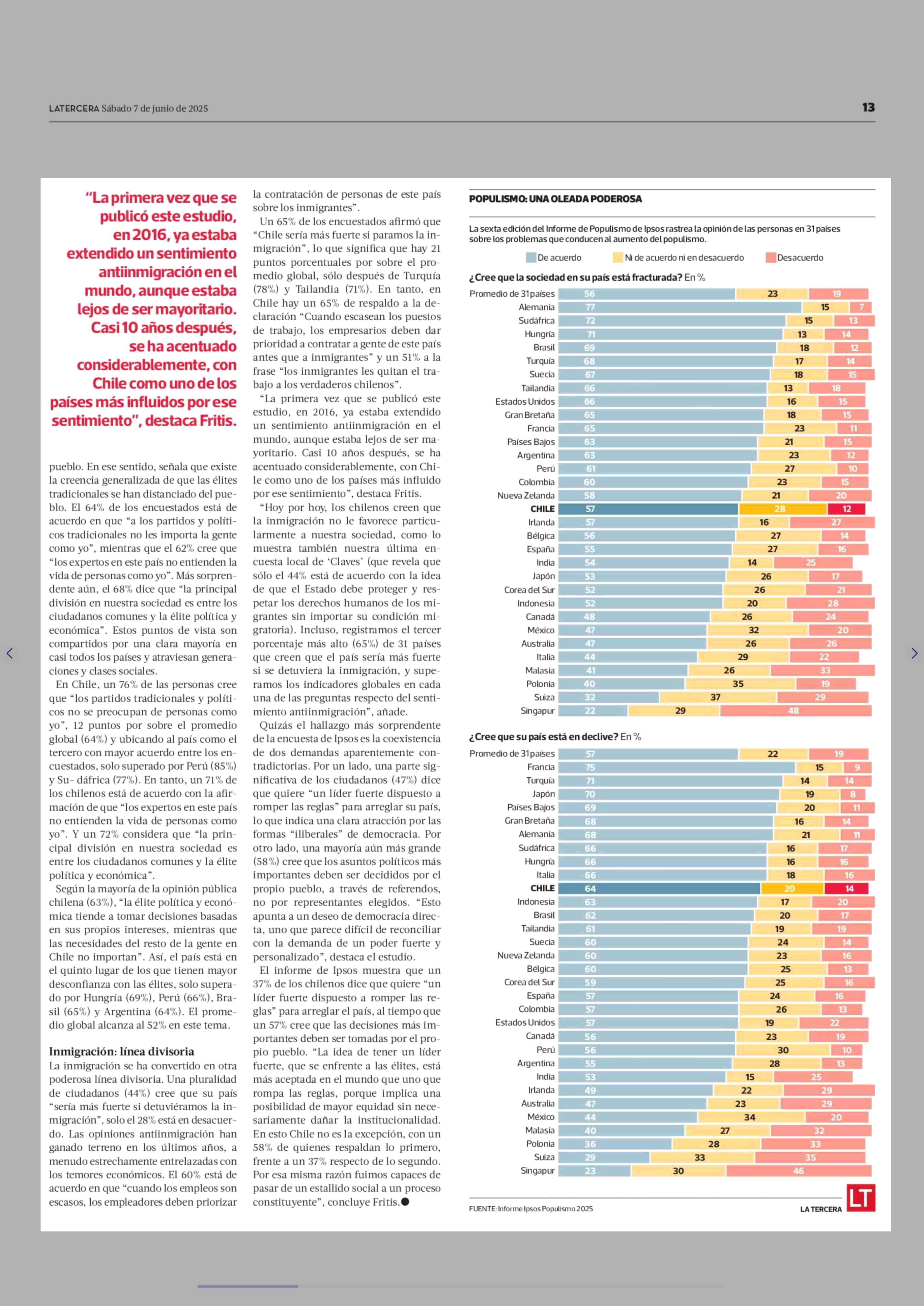 Sondeo global revela del país y estado de la sociedad chilenos con rumbo sombría mirada de 07-06-2025 La Tercera |