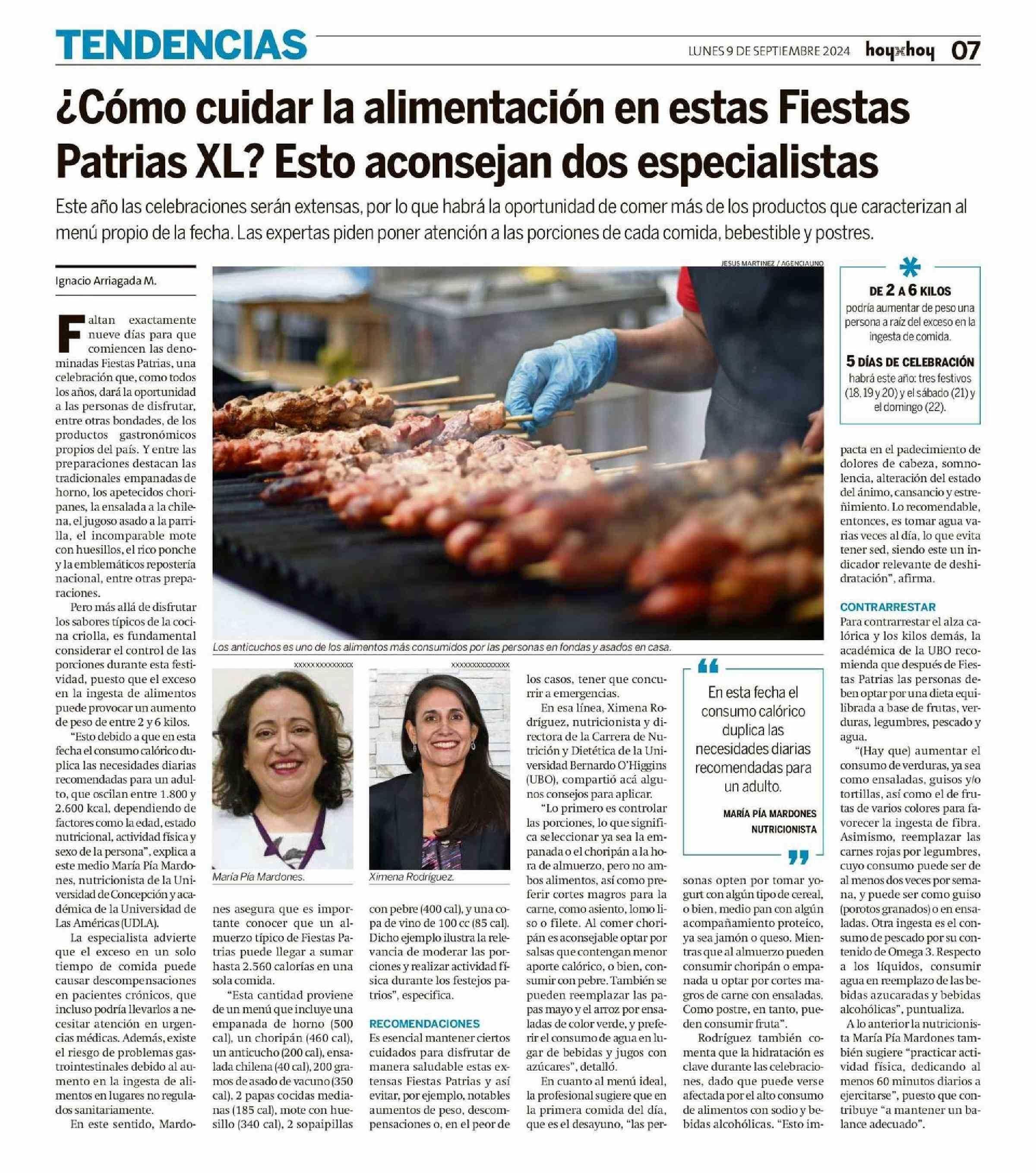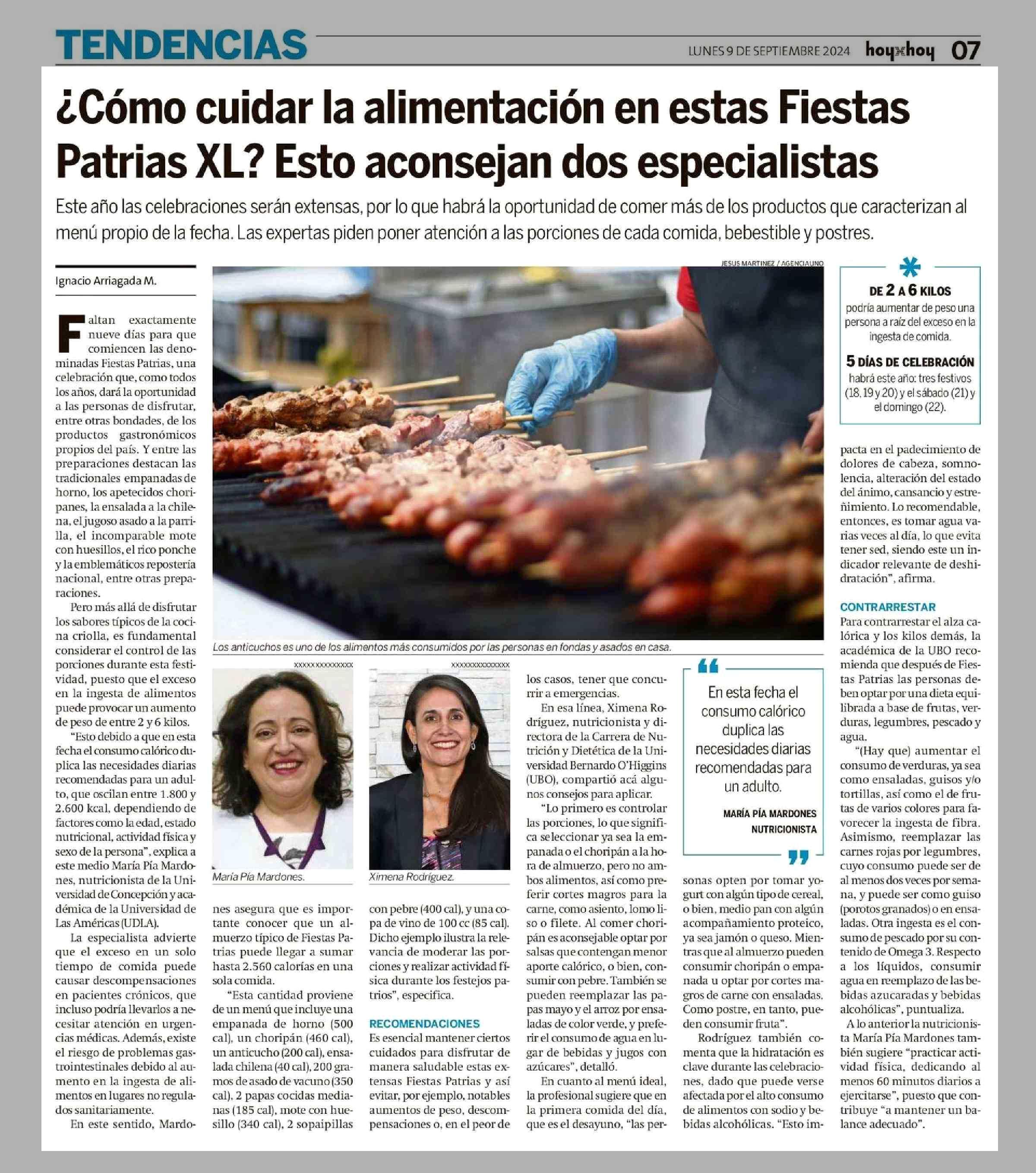 ¿Cómo cuidar la alimentación en estas Fiestas Patrias XL? Esto aconsejan dos especialistas 09-09-2024 Hoy x Hoy Concepción |