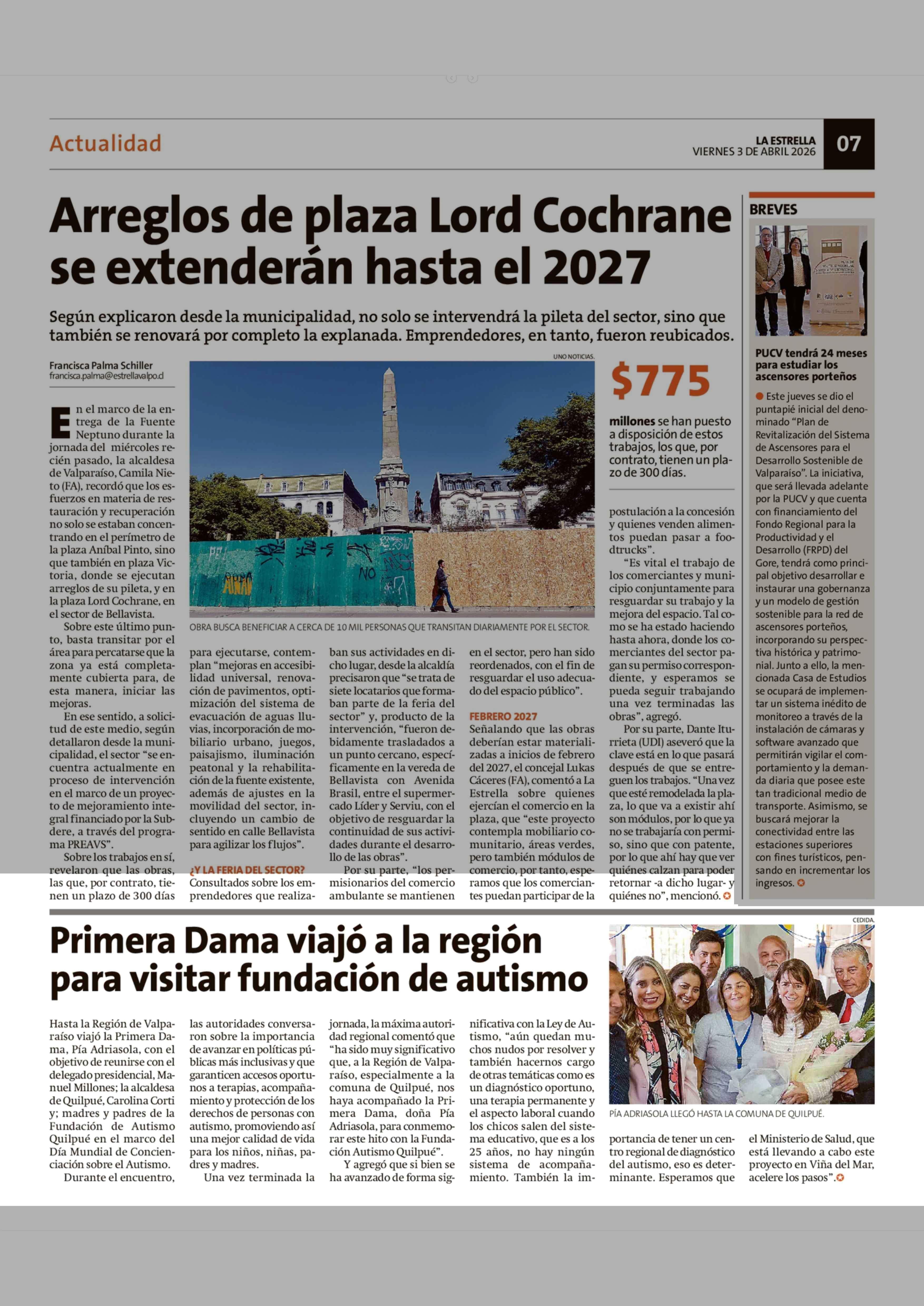 Primera Dama viajó a la región para visitar fundación de autismo 03-04-2026 La Estrella de Valparaíso |