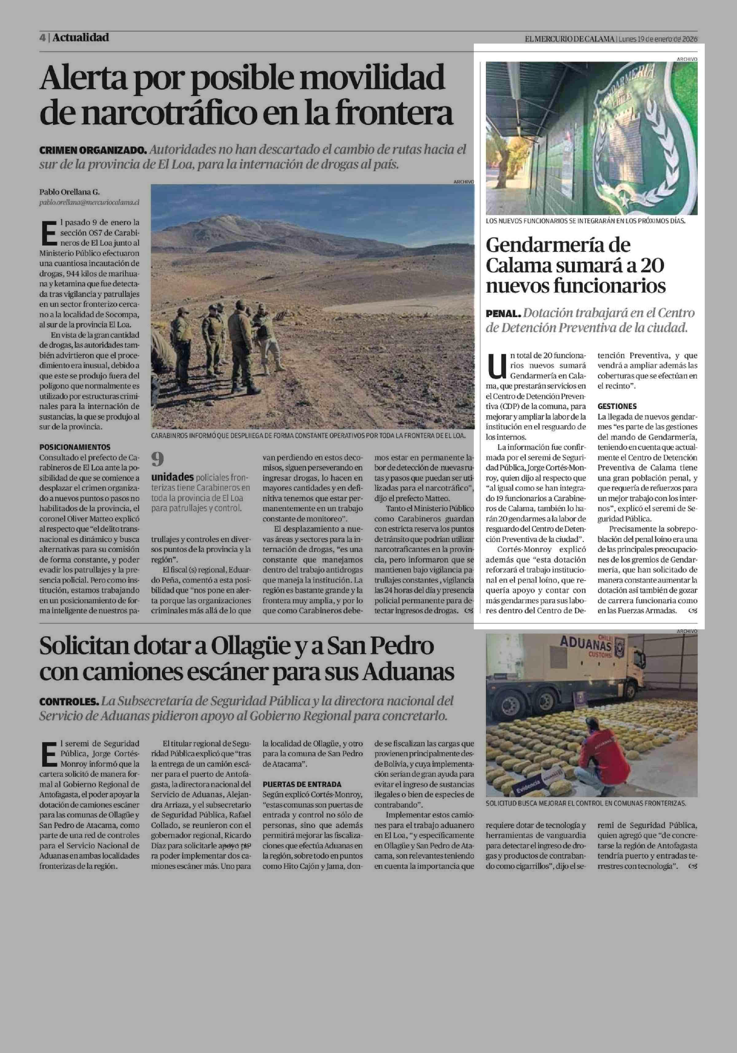 Gendarmería de Calama sumará a 20 nuevos funcionarios 19-01-2026 El Mercurio de Calama |