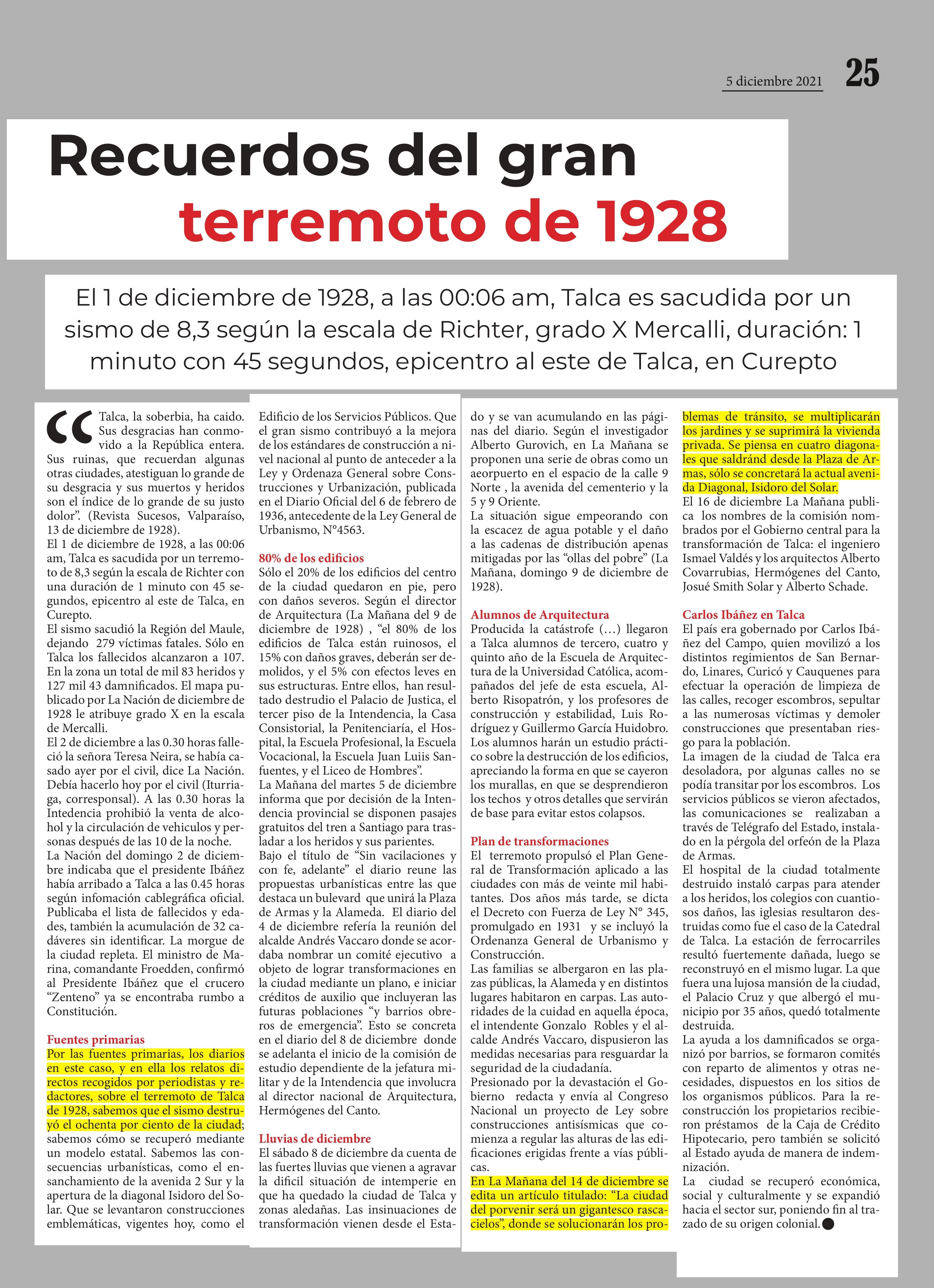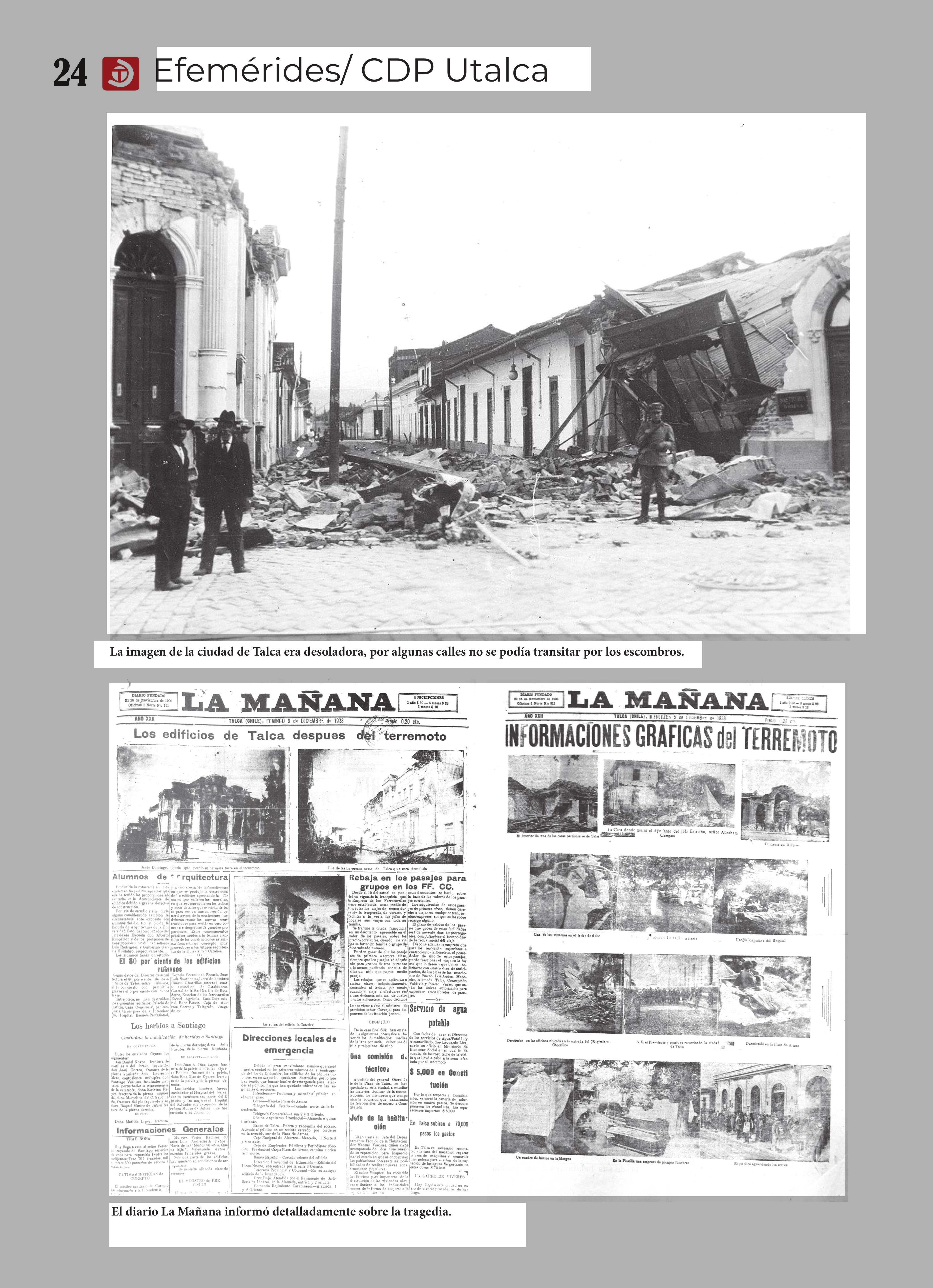 Efemérides/ CDP Utalca Recuerdos del gran terremoto de 1928 05-12-2021 Diario Talca |