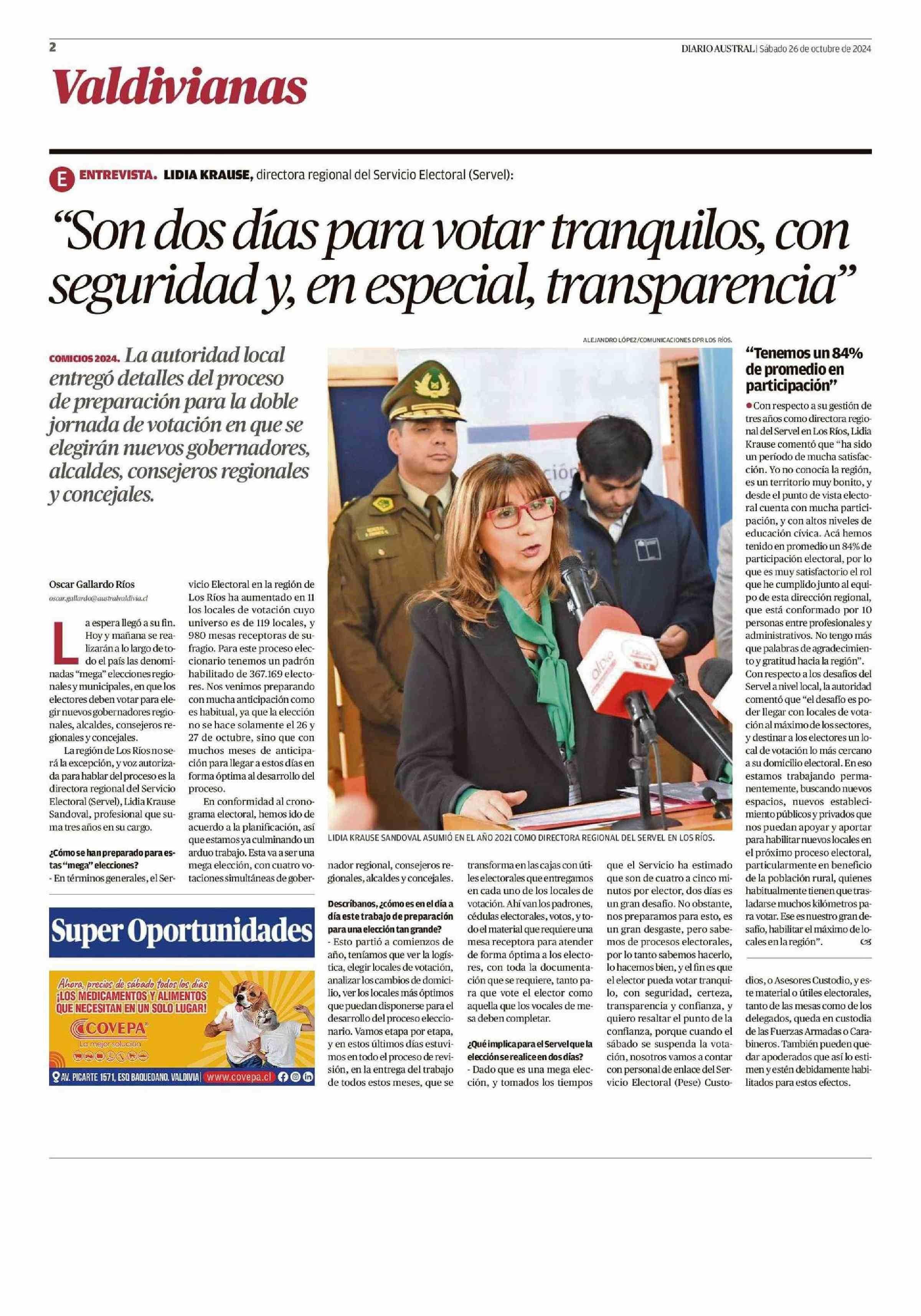 “Son dos días para votar tranquilos, con seguridad y, en especial, transparencia” 26-10-2024 Diario Austral Región de Los Ríos |