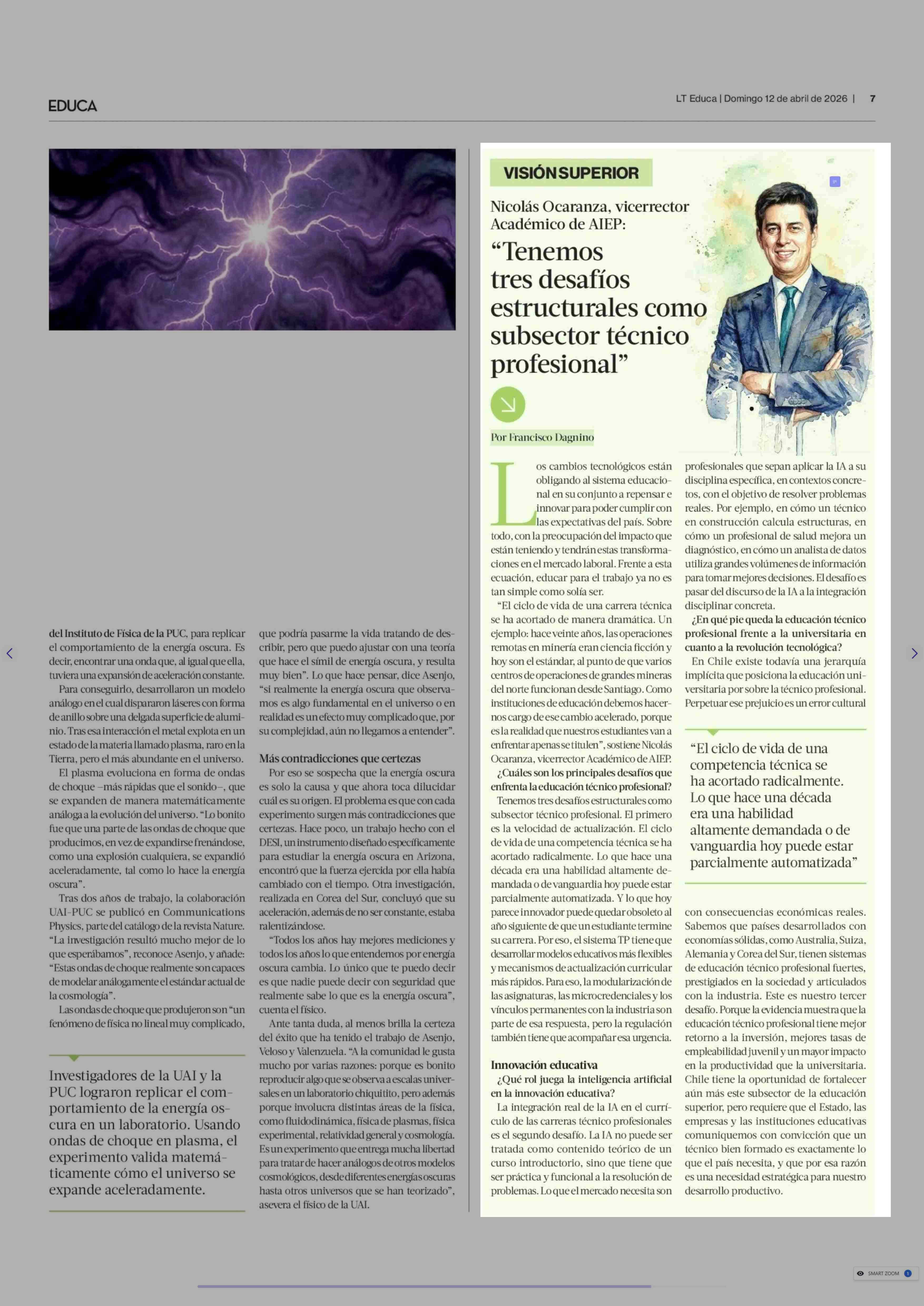 “Tenemos tres desafíos estructurales como subsector técnico profesional” 12-04-2026 La Tercera |