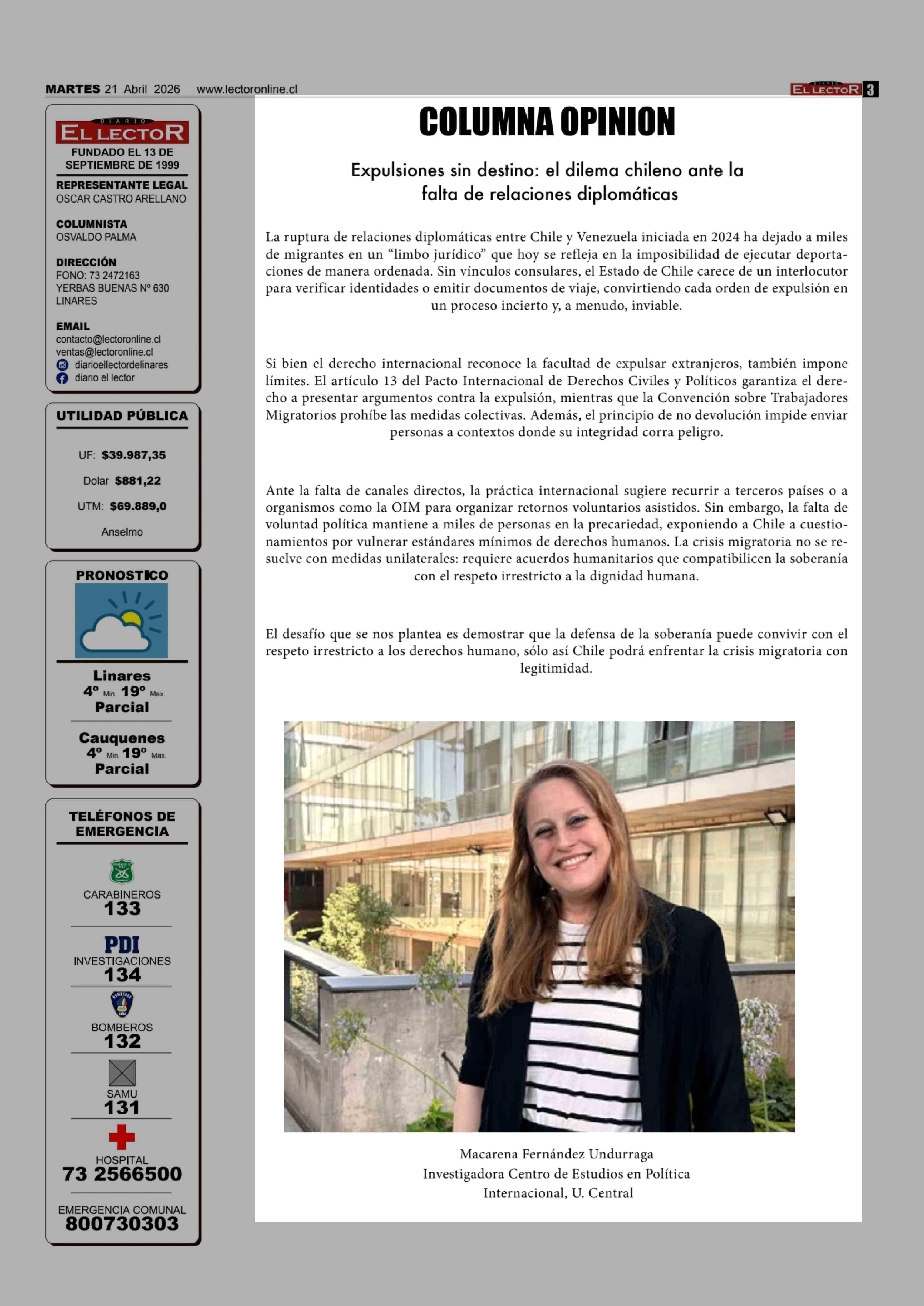 Fecha: 21-04-2026 Sector: Columnas de Opinión Región: Región del Maule