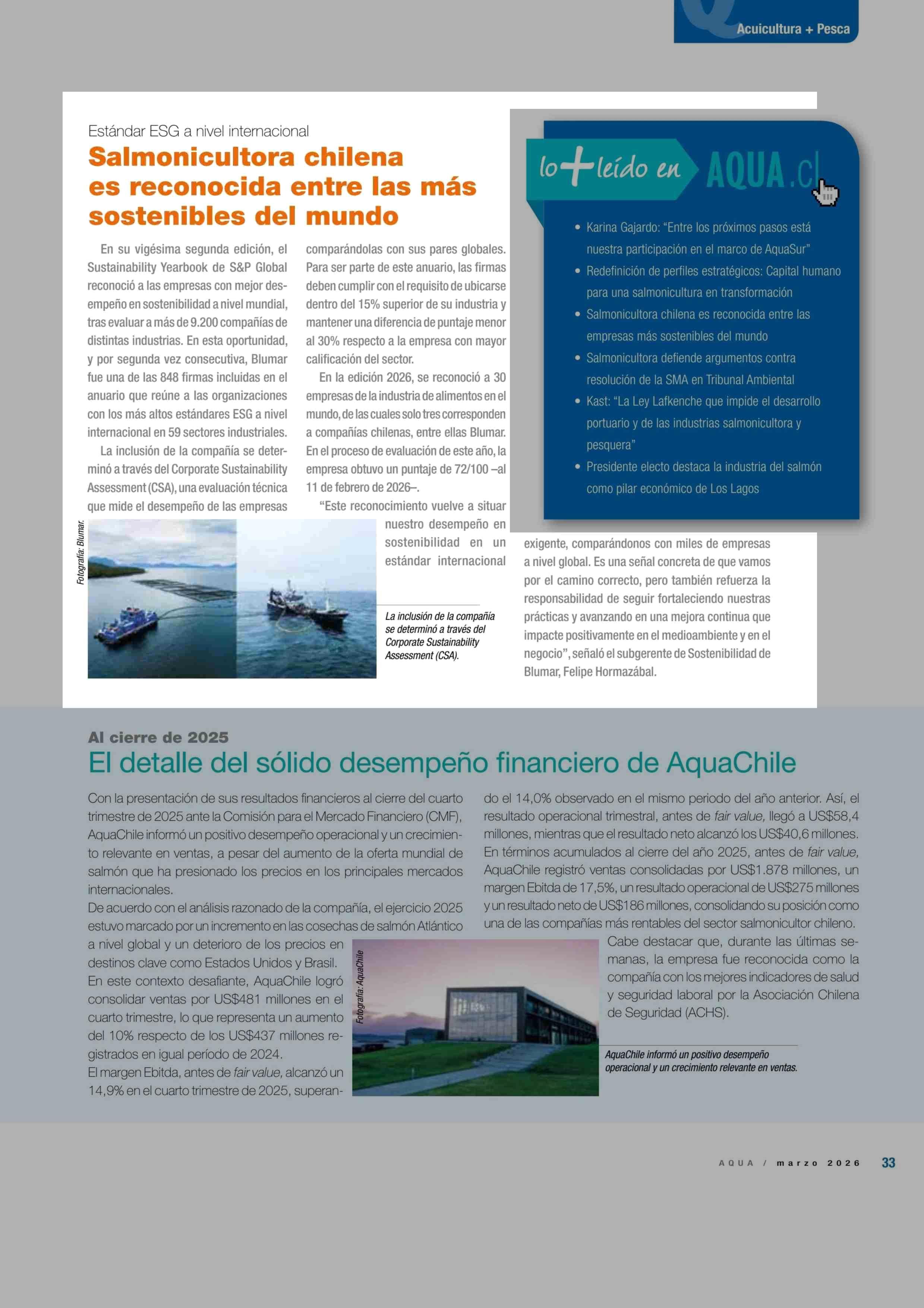 Salmonicultora chilena es reconocida entre las más sostenibles del mundo 12-03-2026 Revista Aqua |