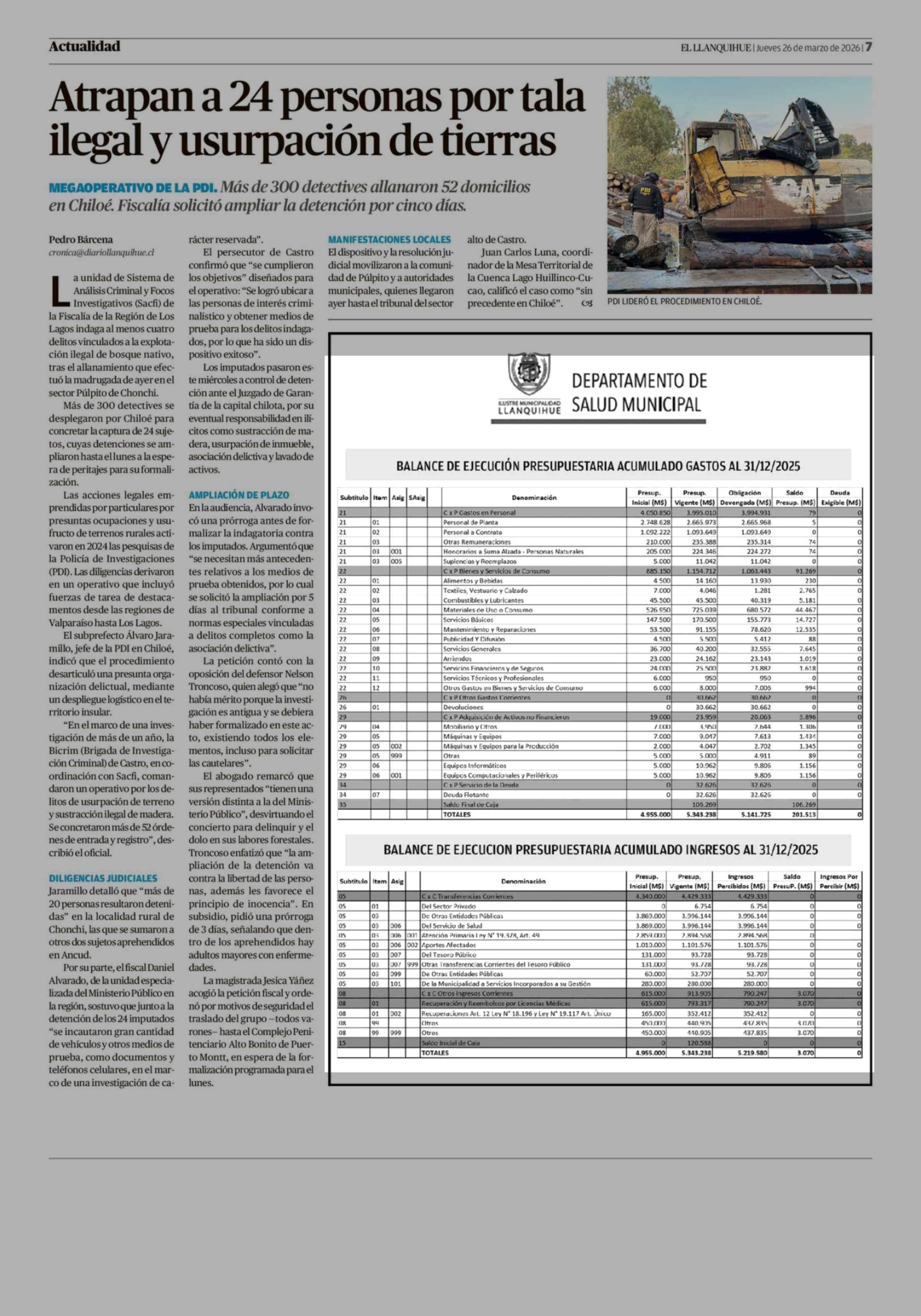 Extractos: ILUSTRE MUNICIPALIDAD LLANQUIHUE 26-03-2026 El Llanquihue |