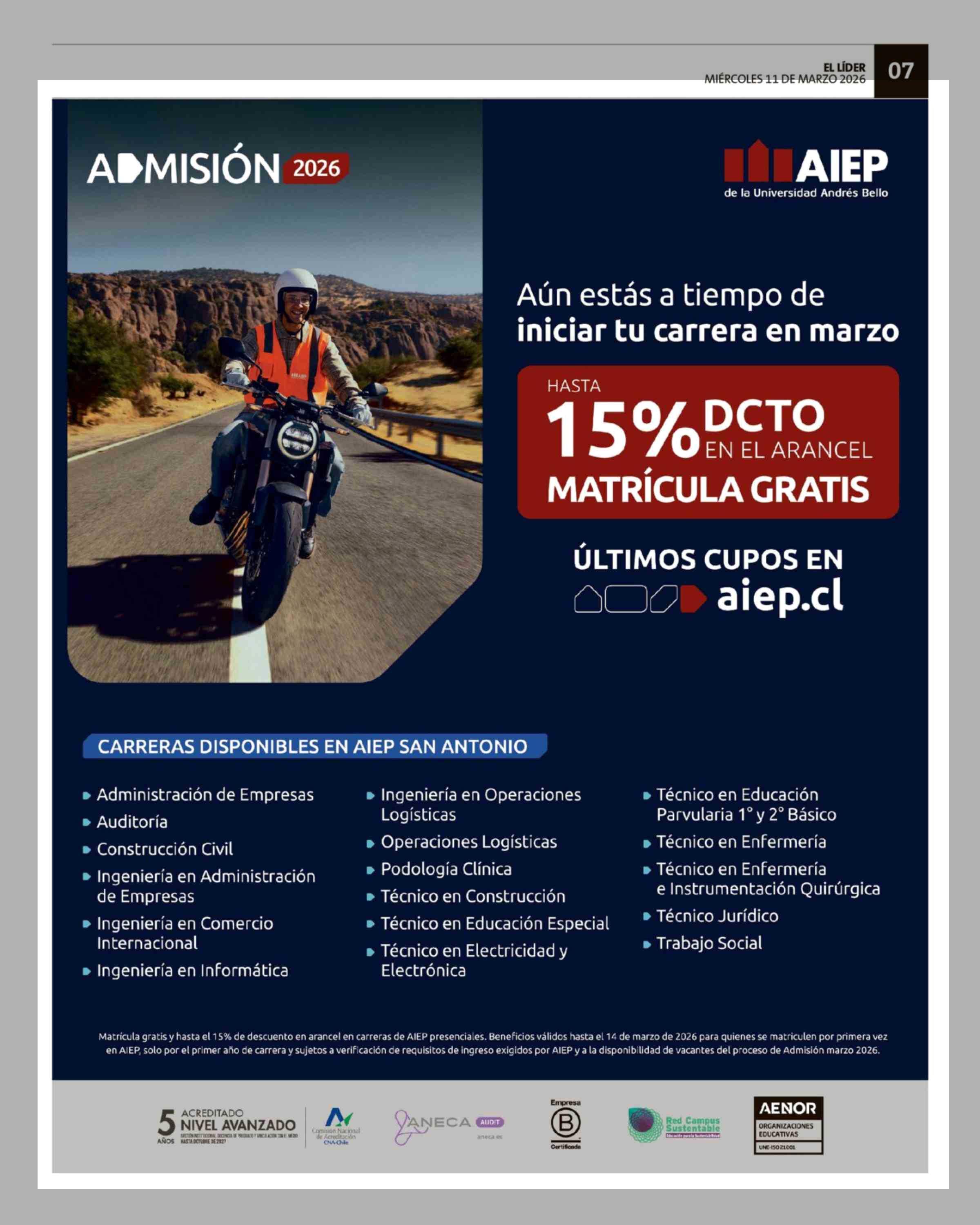 Aviso Educación: AIEP 11-03-2026 El Líder |