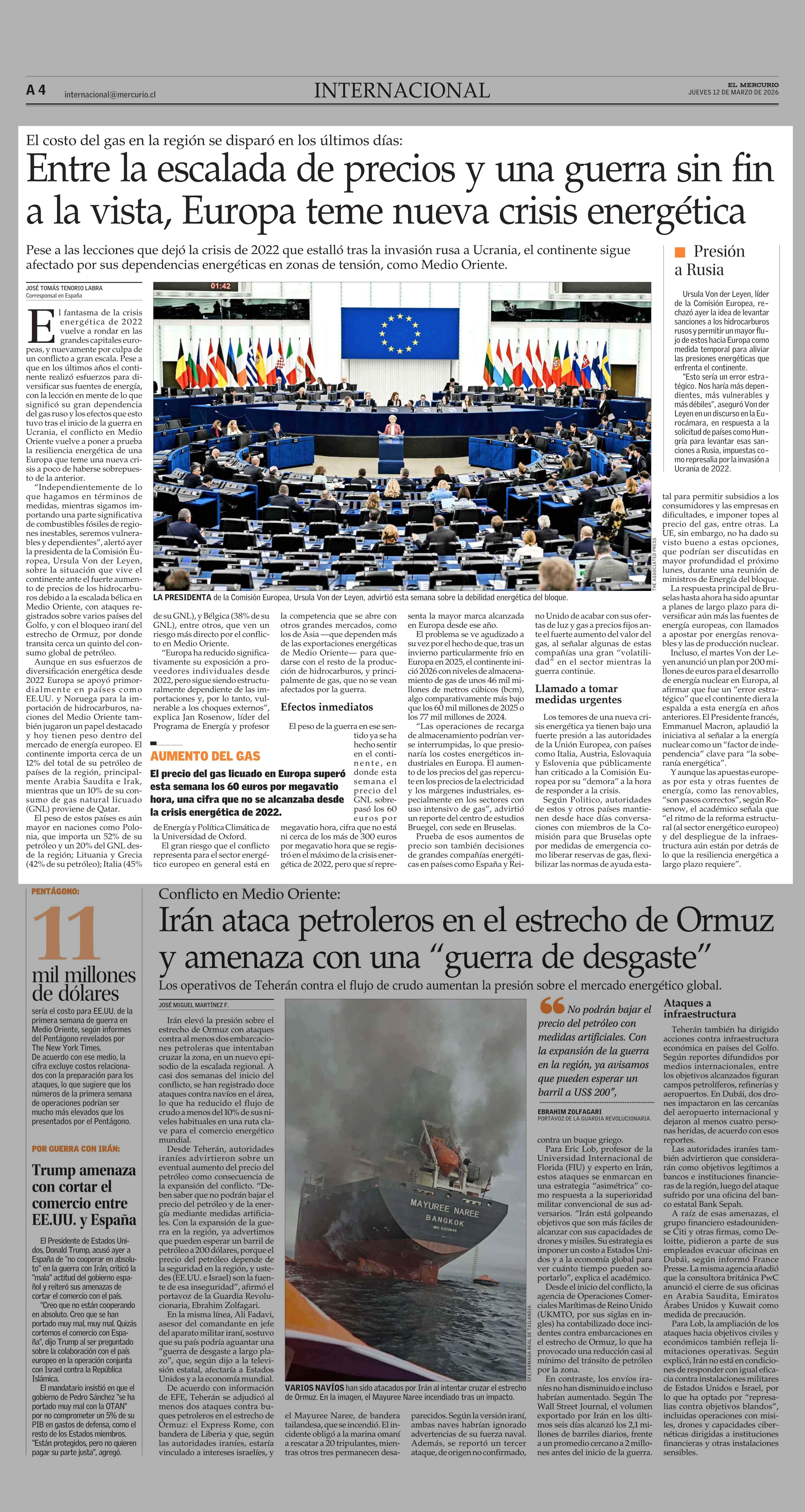 Entre la escalada de precios y una guerra sin fin a la vista, Europa teme nueva crisis energética 12-03-2026 El Mercurio |