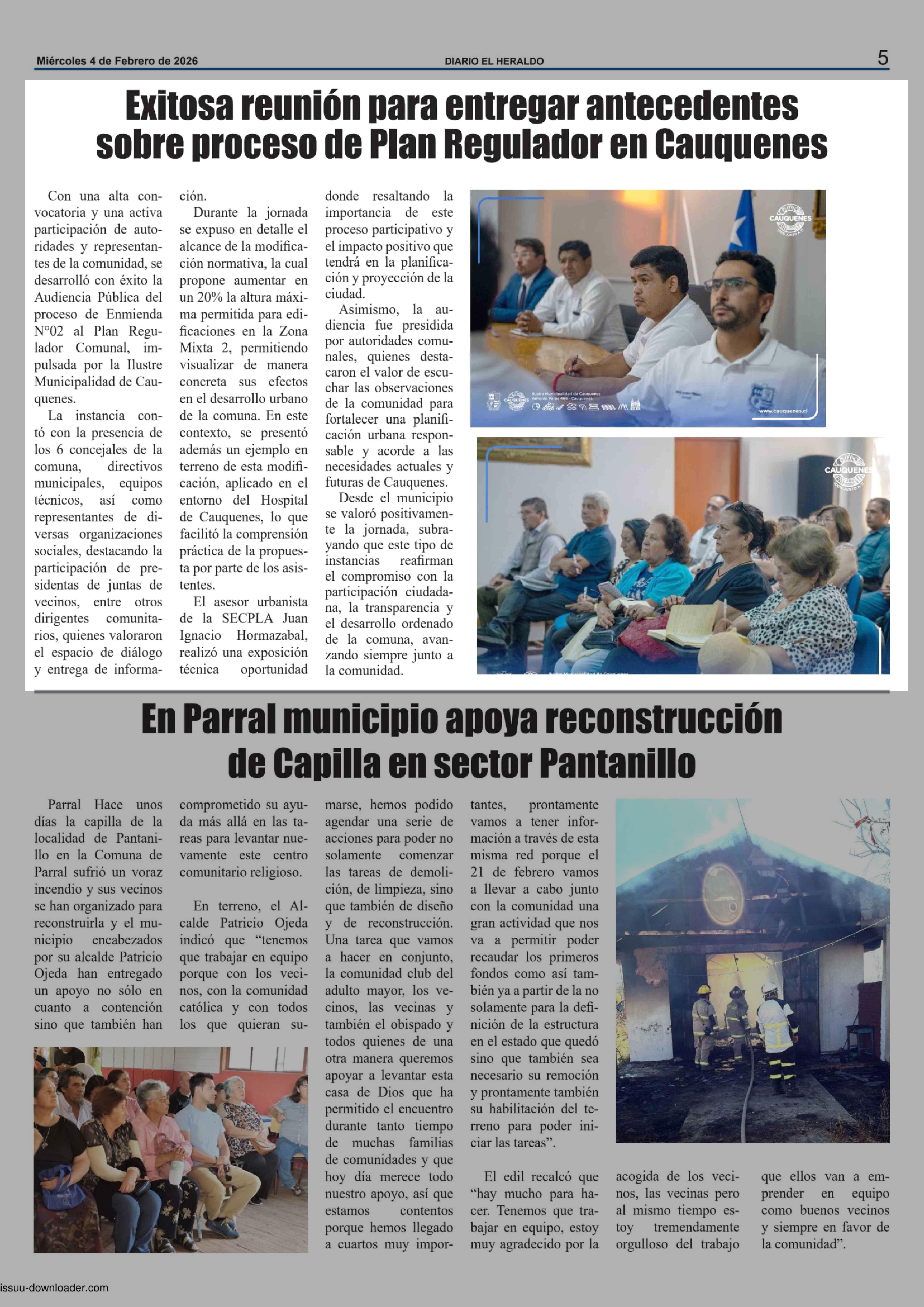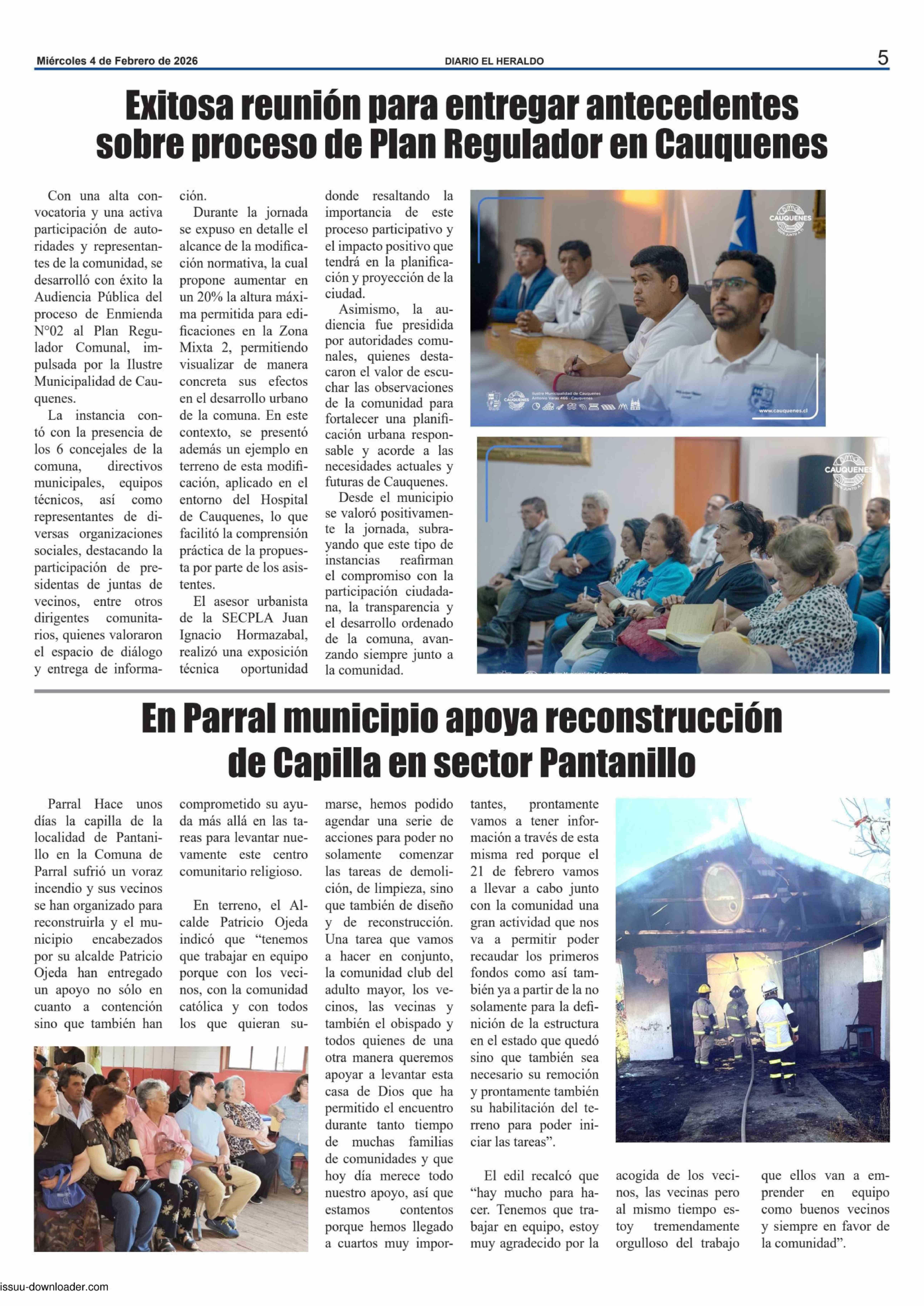 Exitosa reunión para entregar antecedentes sobre proceso de Plan Regulador en Cauquenes 04-02-2026 El Heraldo |
