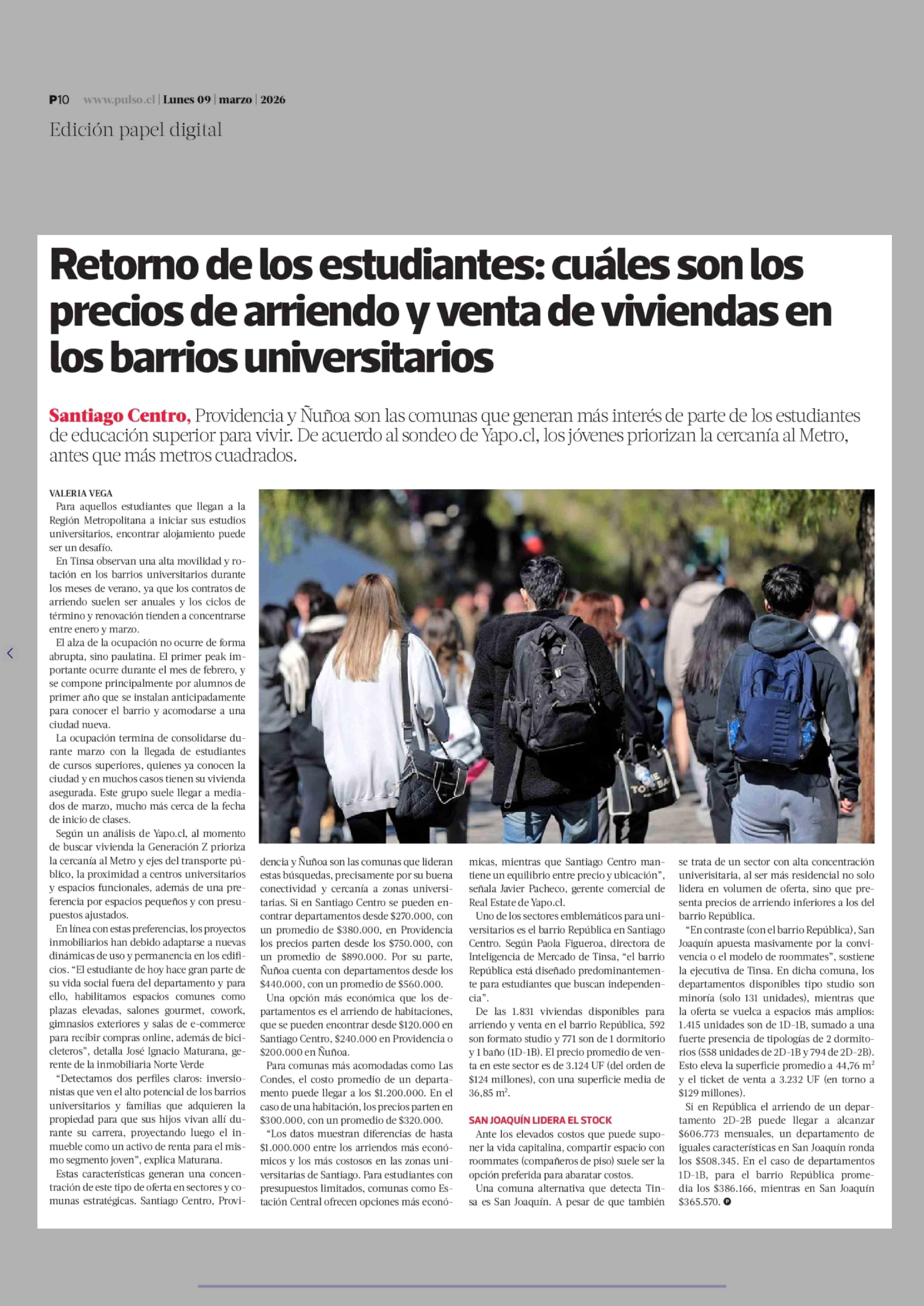 Retorno de los estudiantes: cuáles son los precios de arriendo y venta de viviendas en los barrios universitarios 09-03-2026 La Tercera |