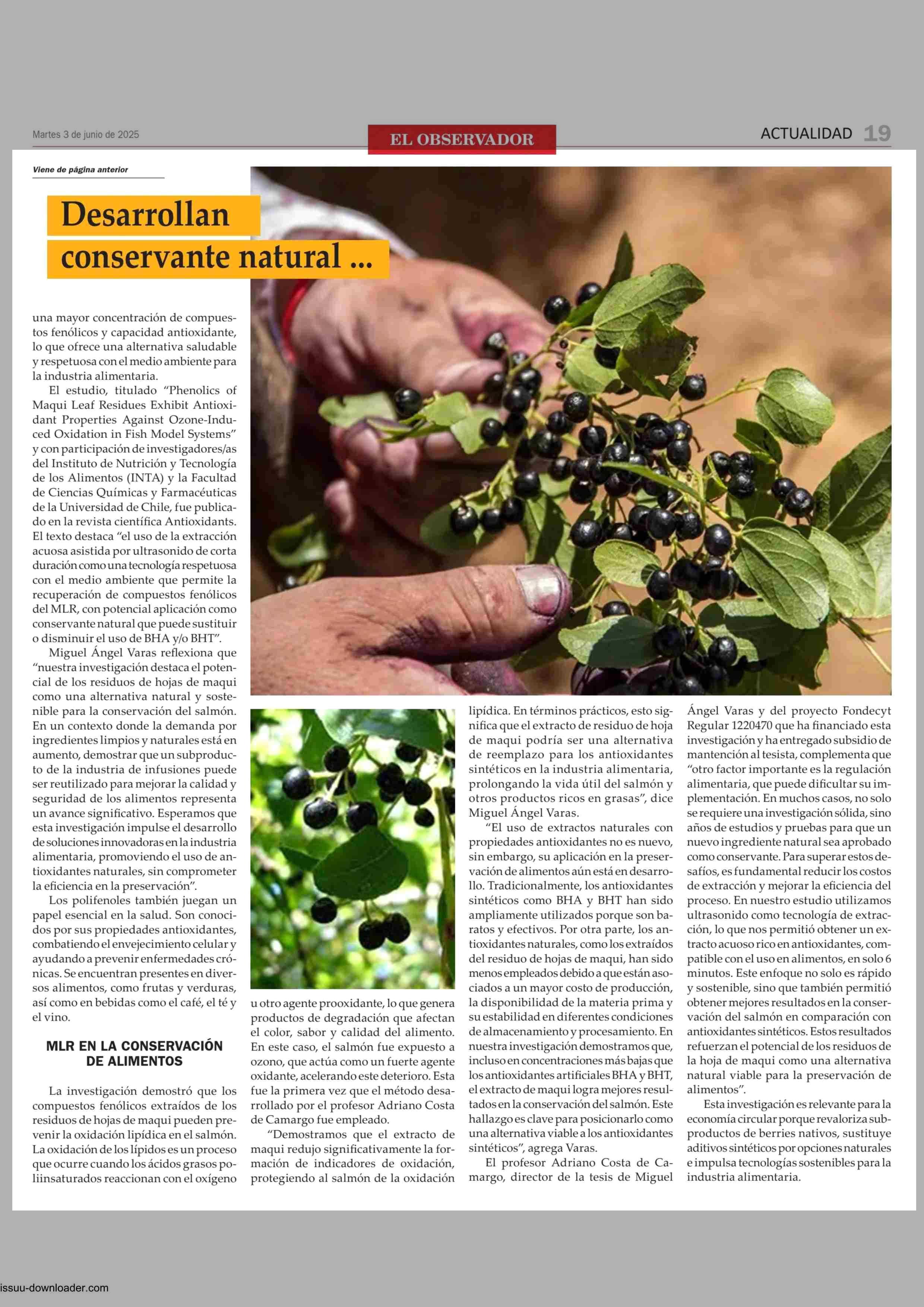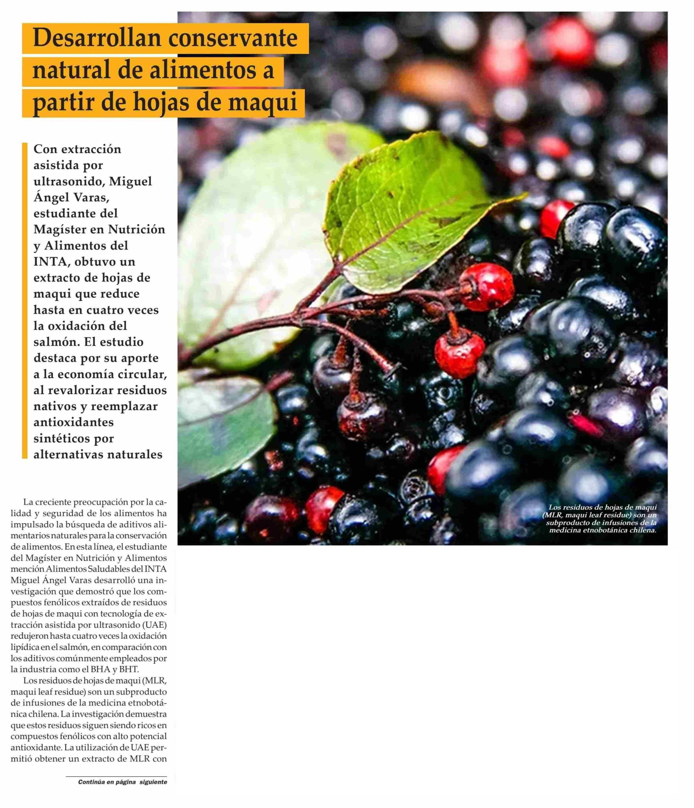 Título: Desarrollan conservante natural de alimentos a partir de hojas de maqui