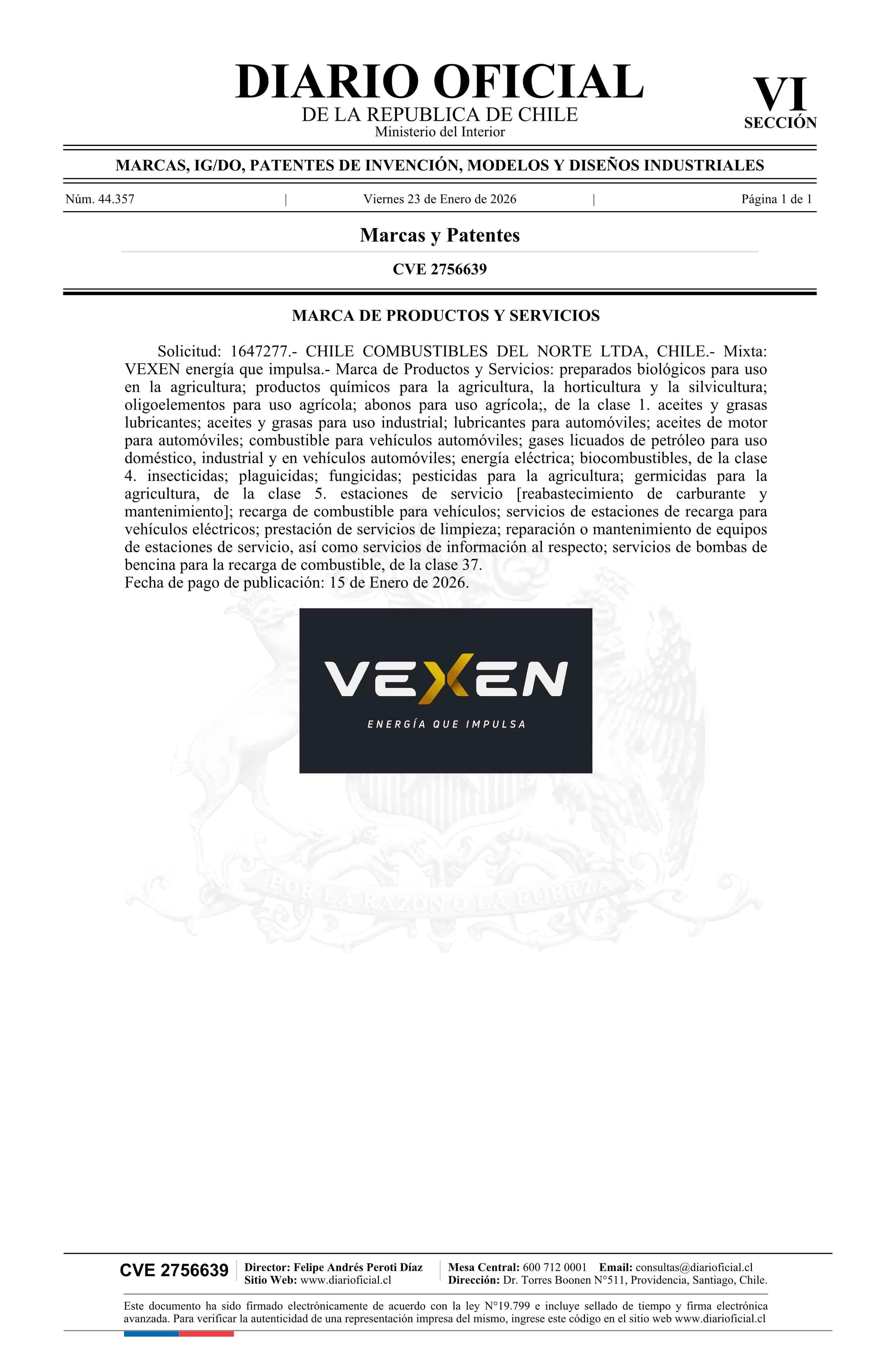 Solicitud número 1647277.- VEXEN energía que impulsa