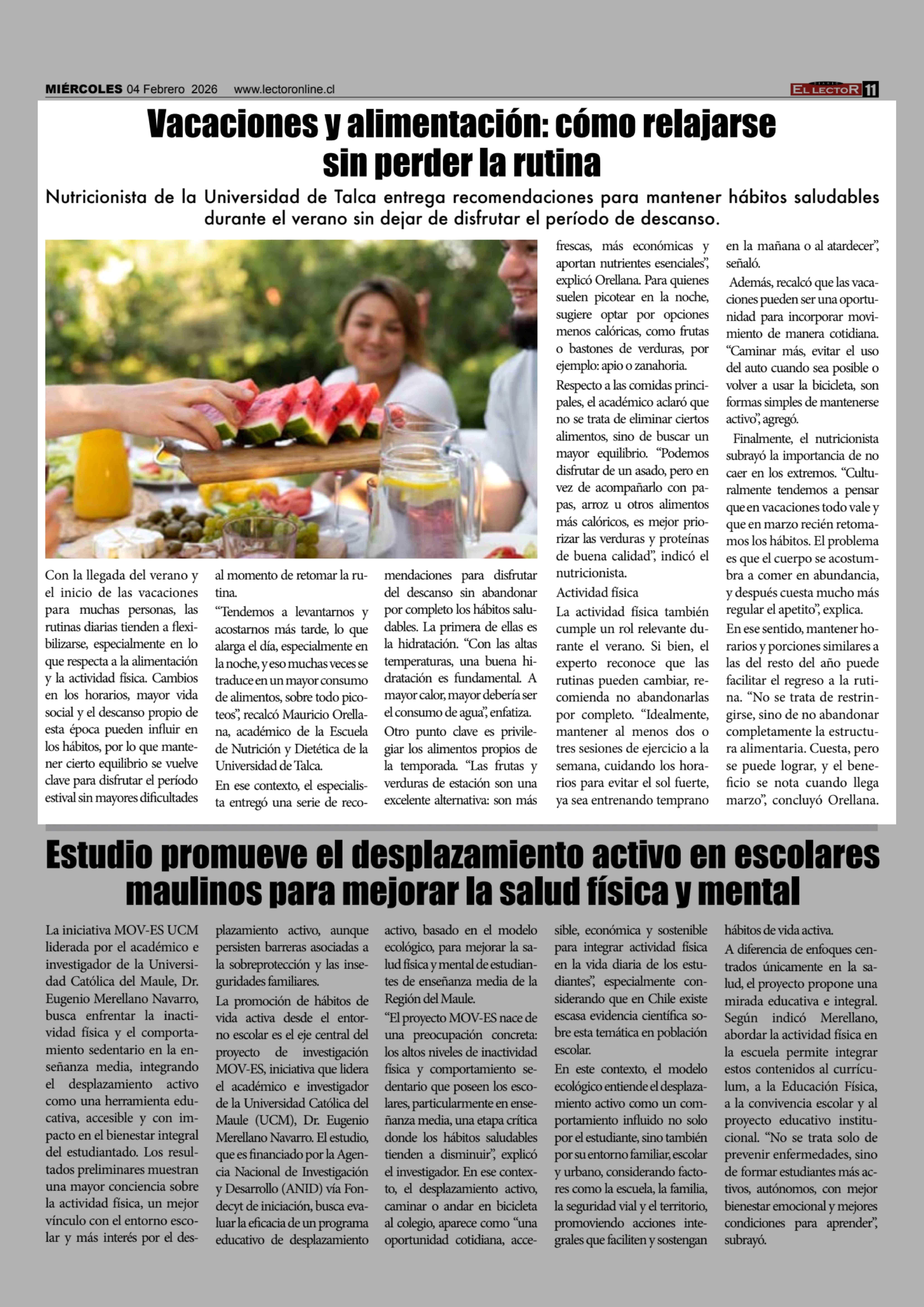 Vacaciones y alimentación: cómo relajarse sin perder la rutina 04-02-2026 El Lector |