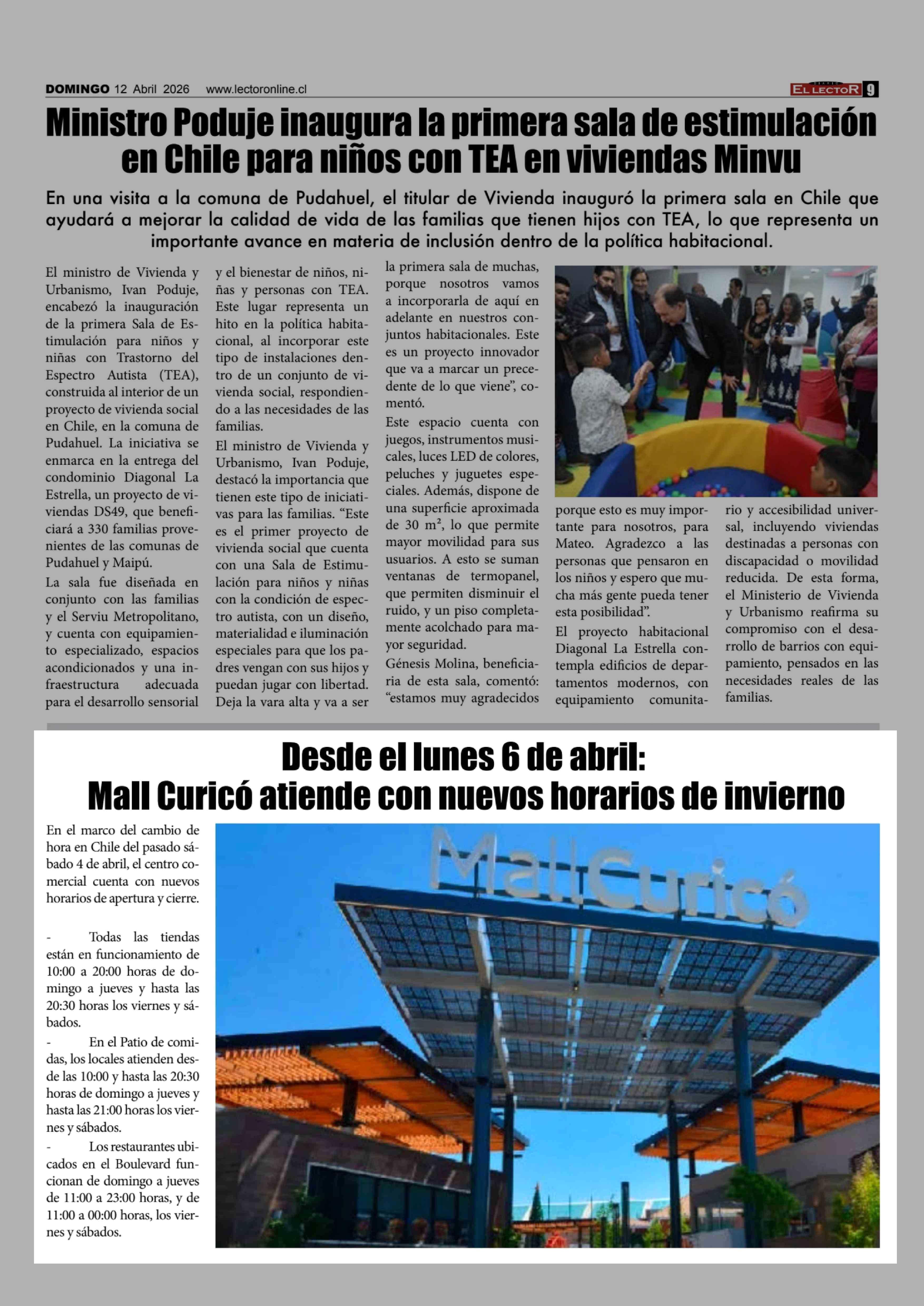 Desde el lunes 6 de abril: Mall Curicó atiende con nuevos horarios de invierno 12-04-2026 El Lector |