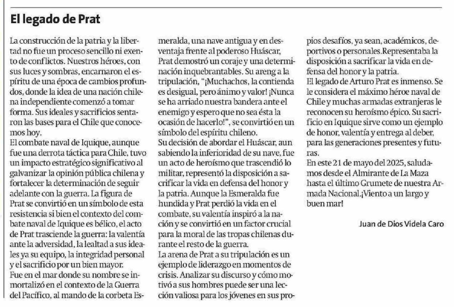 Cartas: El legado de Prat 19-05-2025 La Estrella de Iquique |