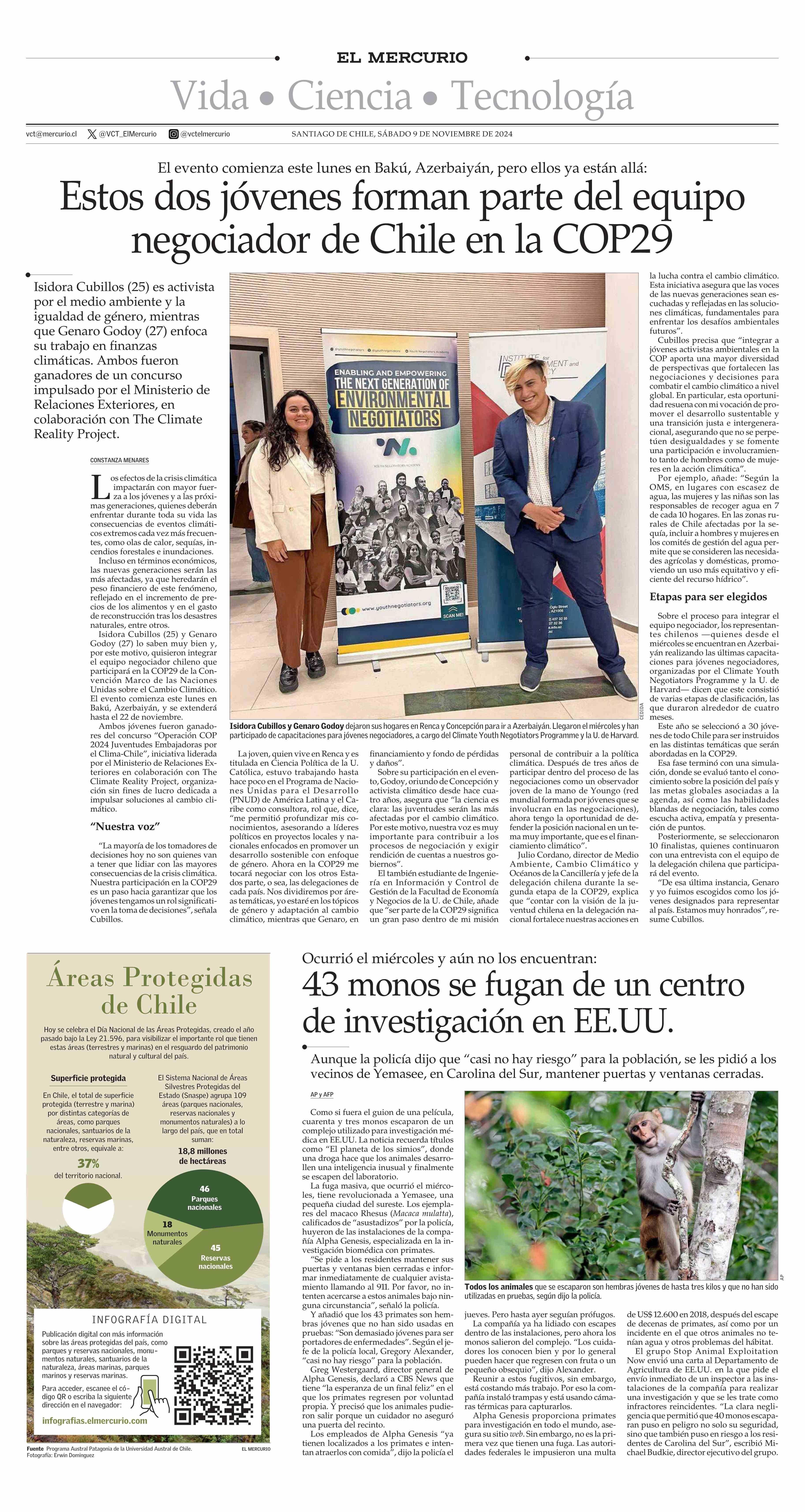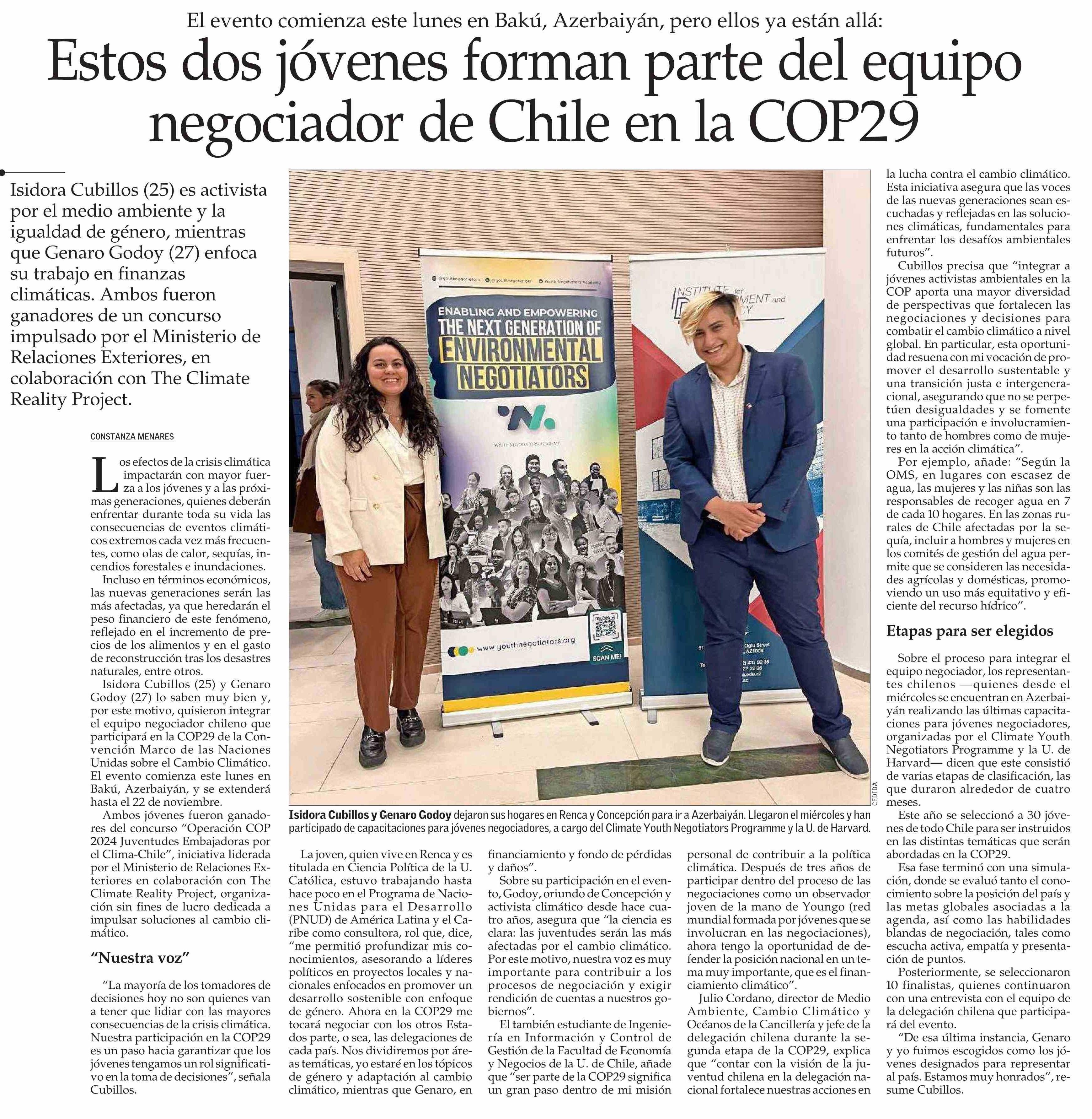 Estos dos jóvenes forman parte del equipo negociador de Chile en la COP29 09-11-2024 El Mercurio |