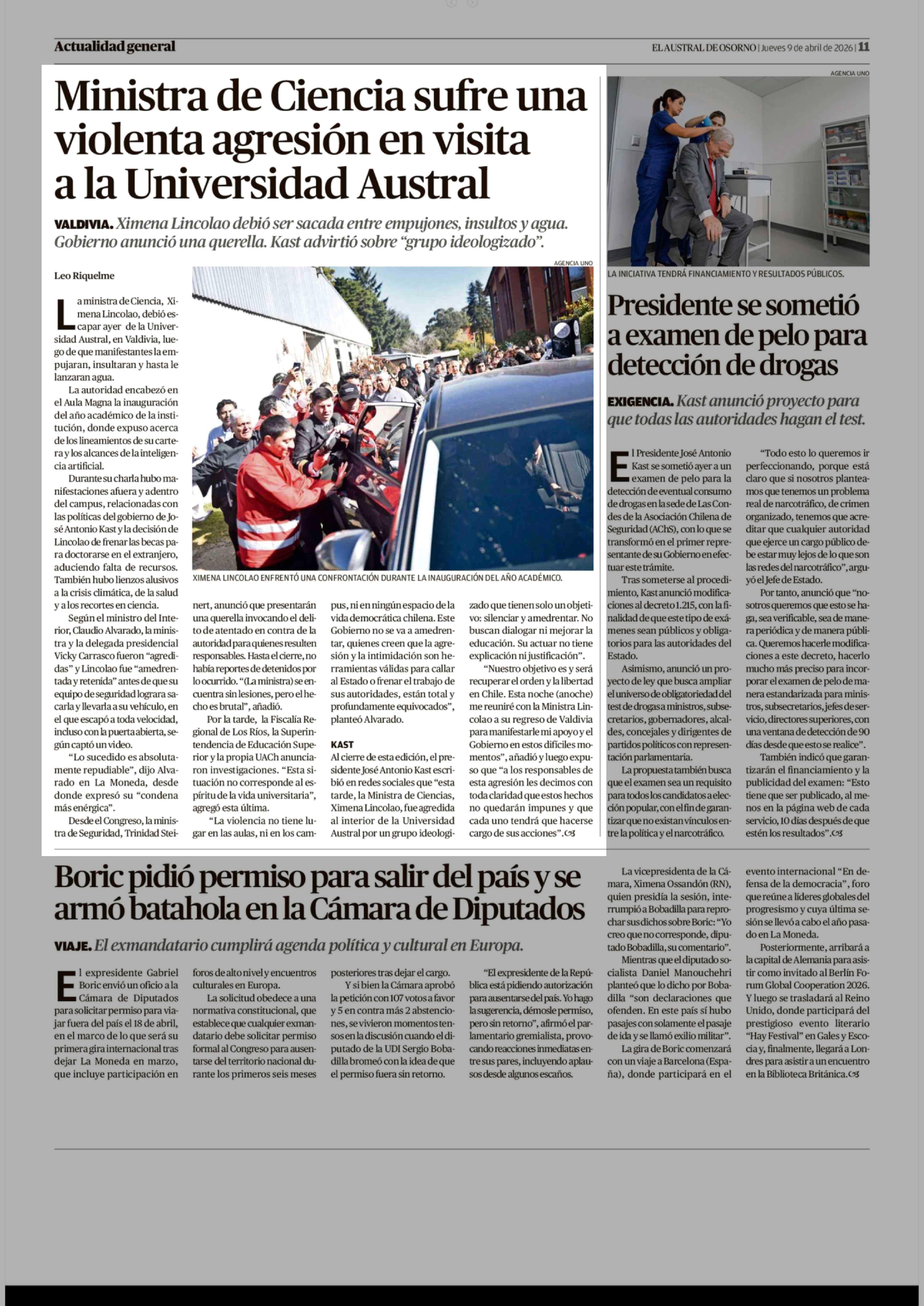 Fuente: El Austral de Osorno (El Austral de Osorno) Página(s): 11