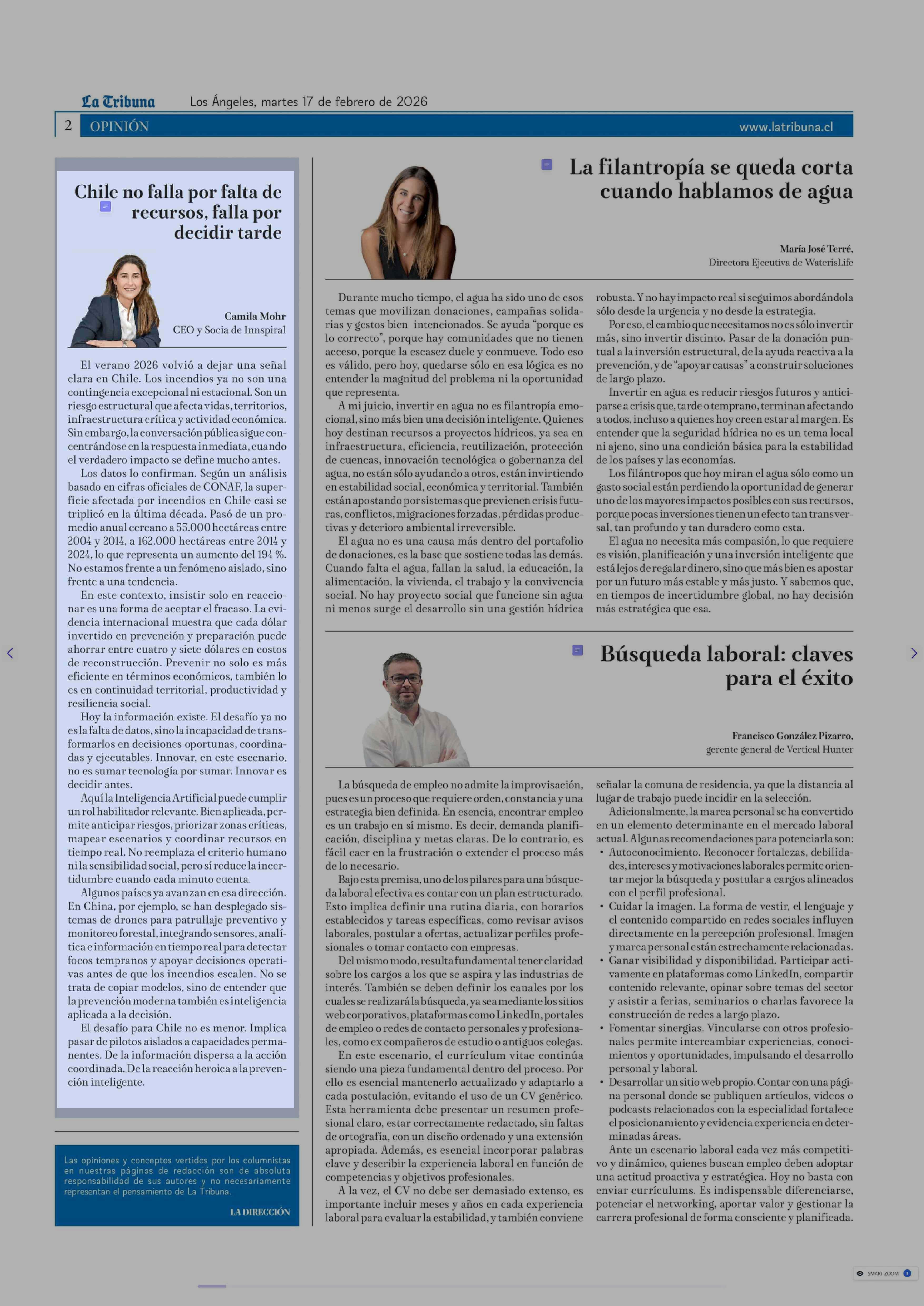 Columnas de Opinión: Chile no falla por falta de recursos, falla por decidir tarde 17-02-2026 La Tribuna |