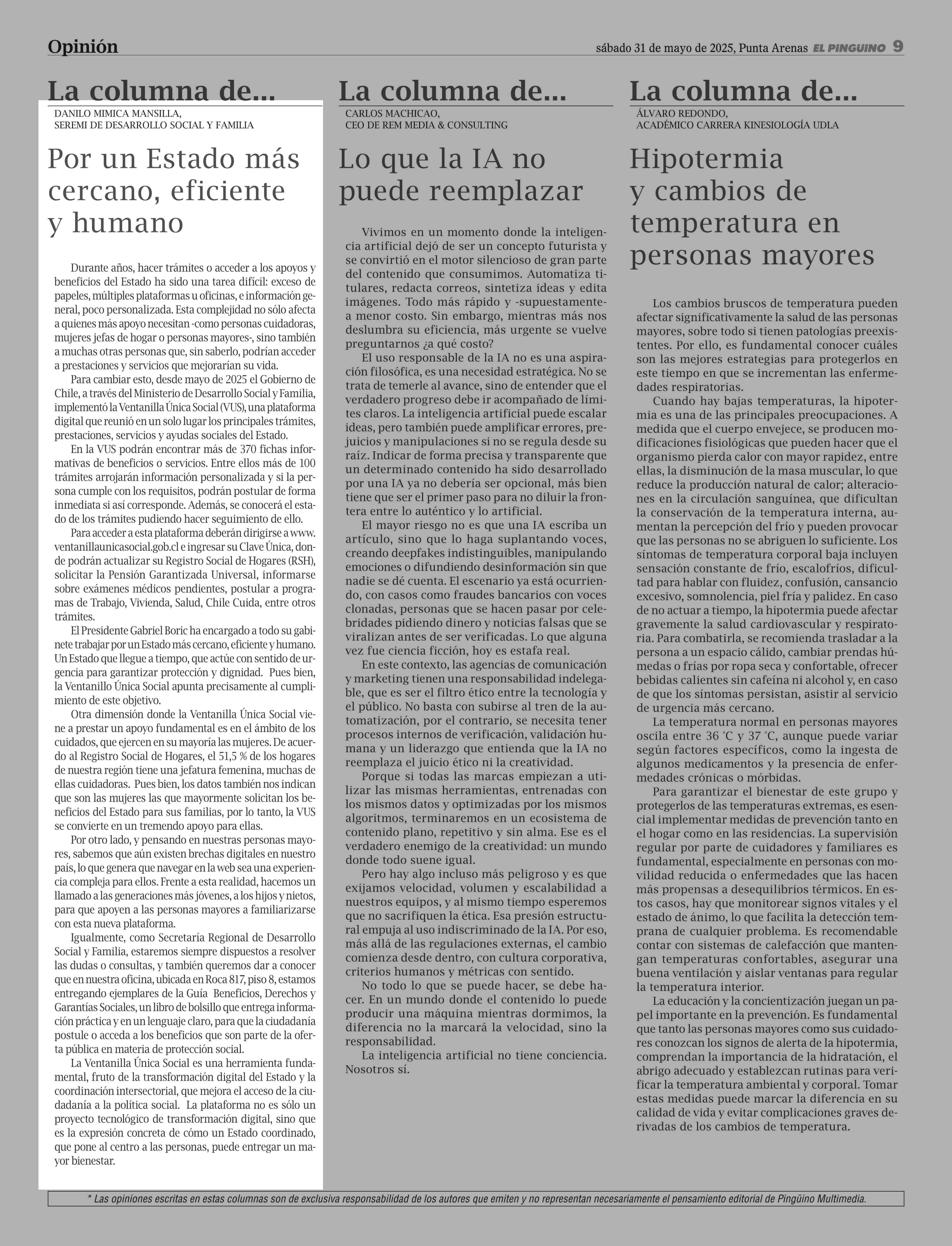 Columnas de Opinión: Por un Estado más cercano, eficiente y humano 31-05-2025 El Pingüino |