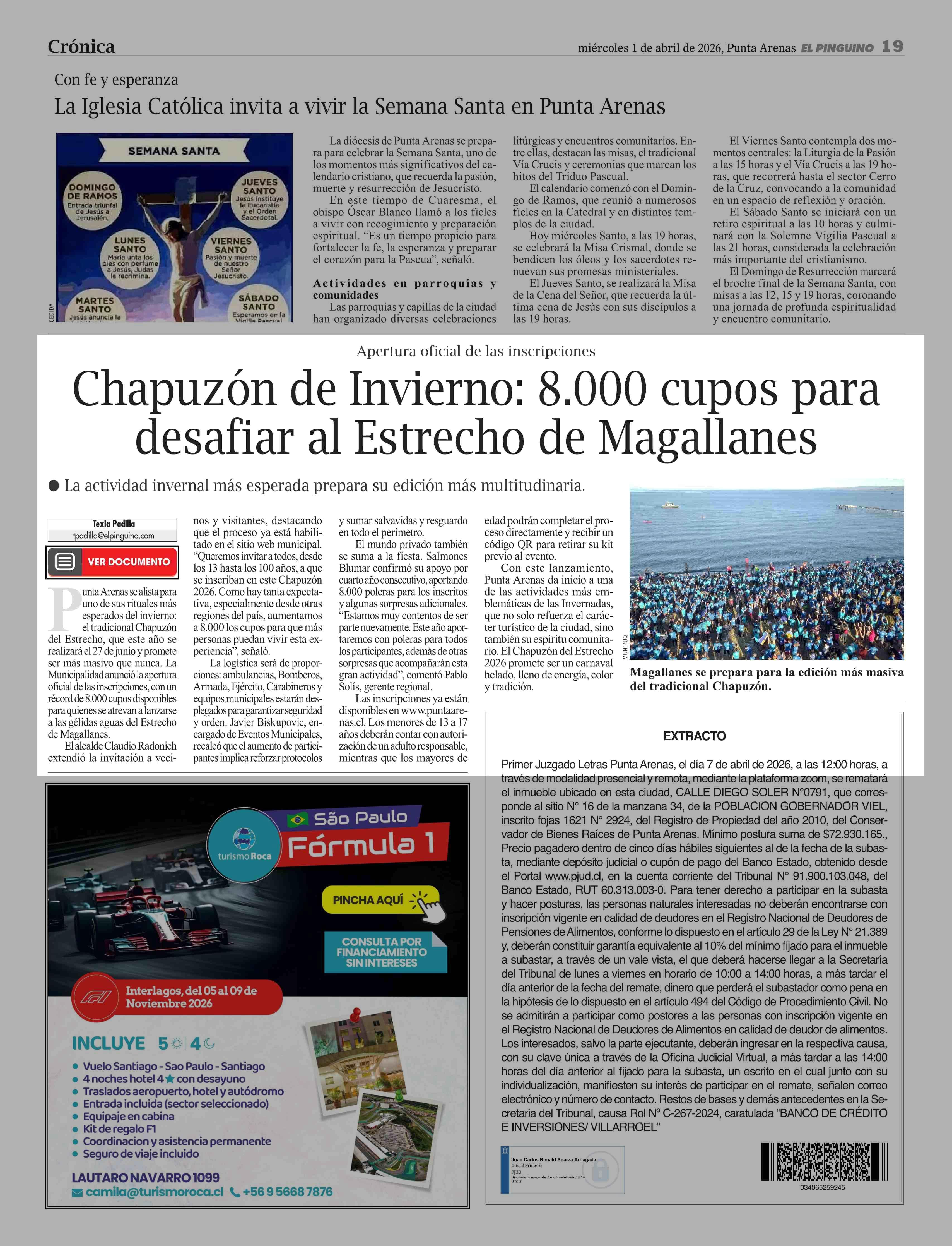 | Fecha: | 01-04-2026 | Sector: | Noticia general | Región: | Región de Magallanes y de la Antártica Chilena |