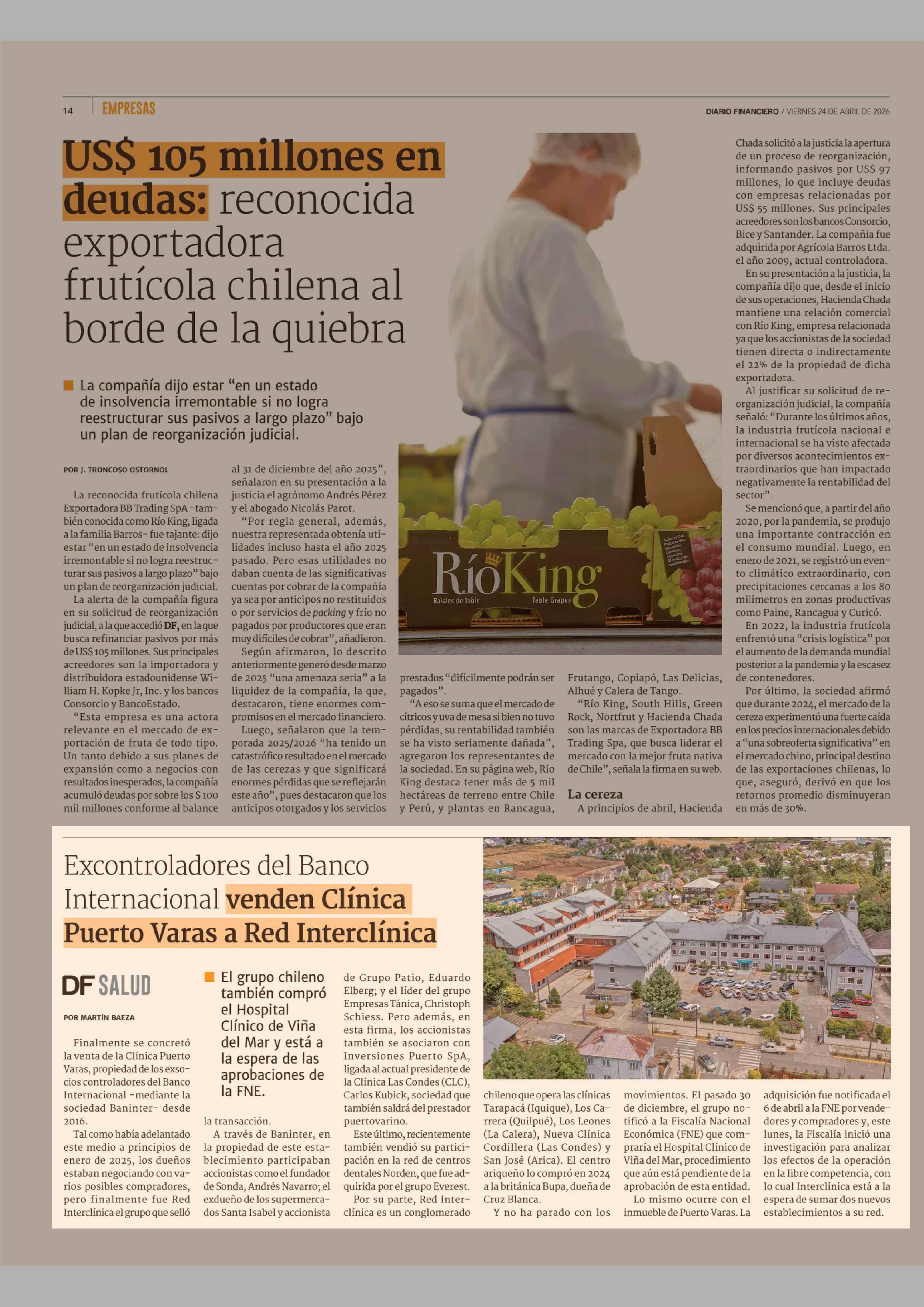 Fuente: Diario Financiero (Diario Financiero) Página(s): 14