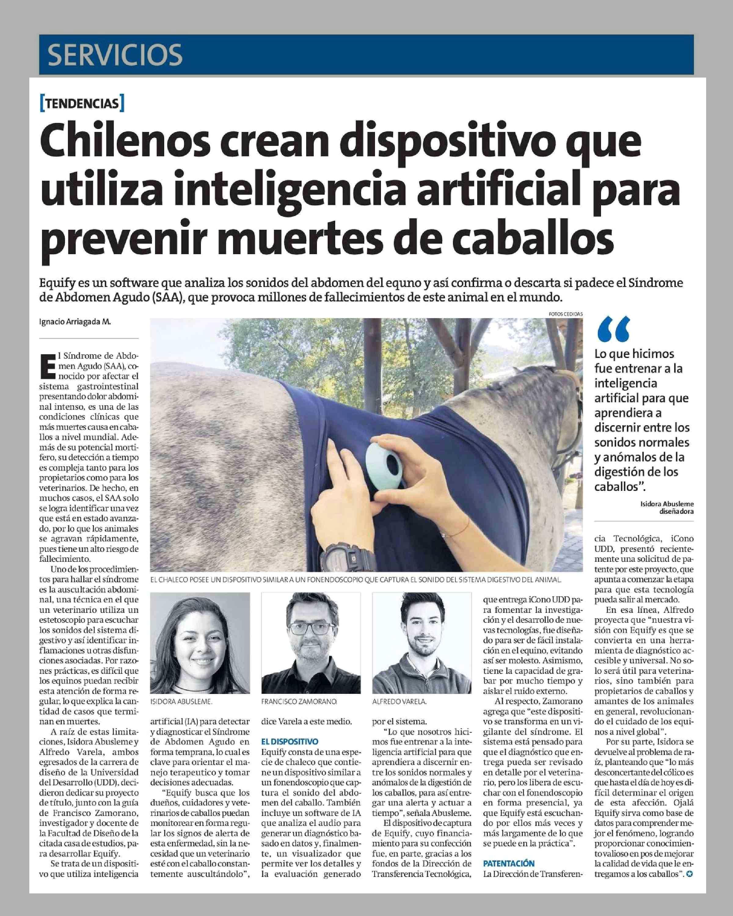 | Título: | Chilenos crean dispositivo que utiliza inteligencia artificial para prevenir muertes de caballos |