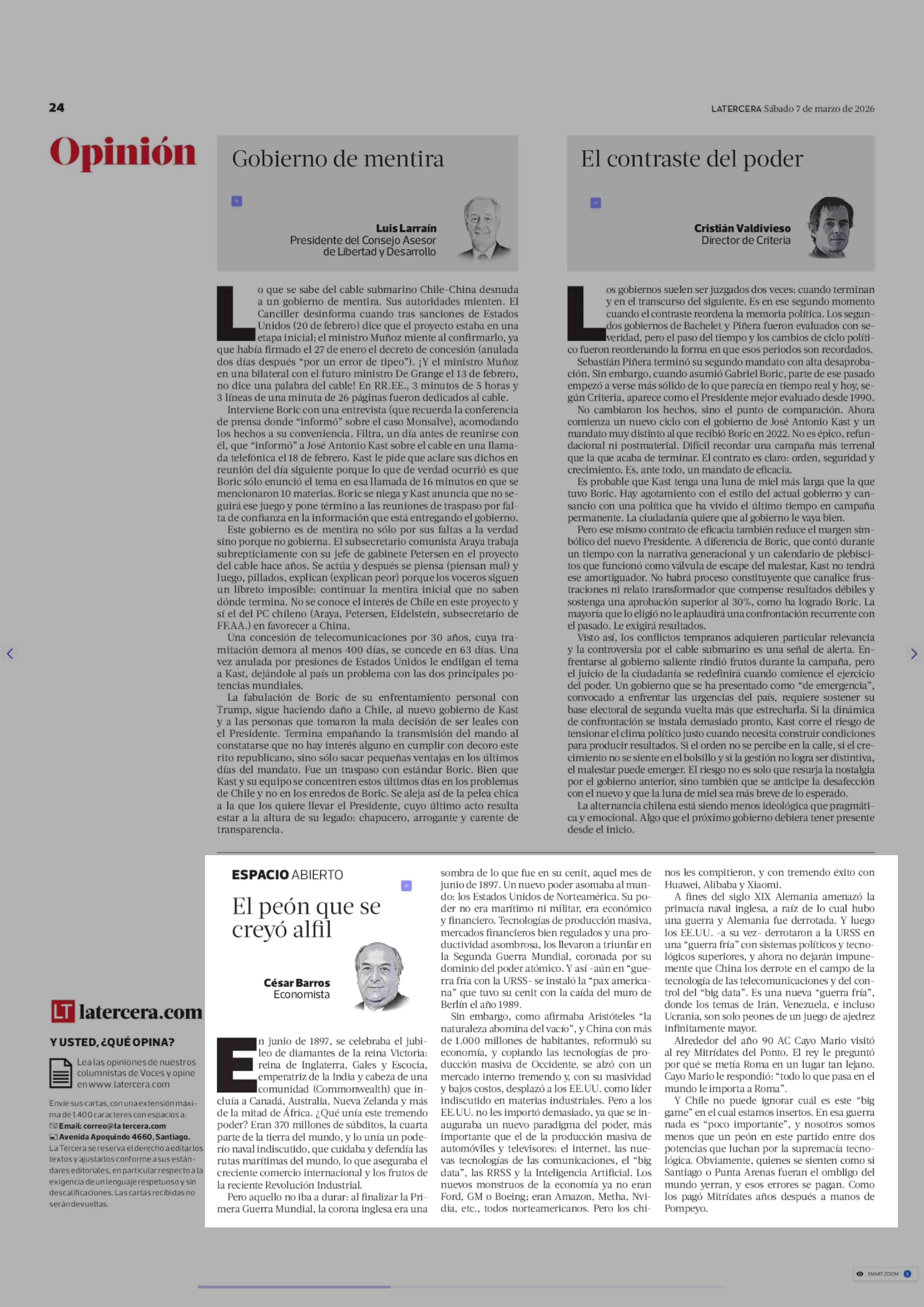 COLUMNAS DE OPINIÓN: El peón que se creyó alfil 07-03-2026 La Tercera |