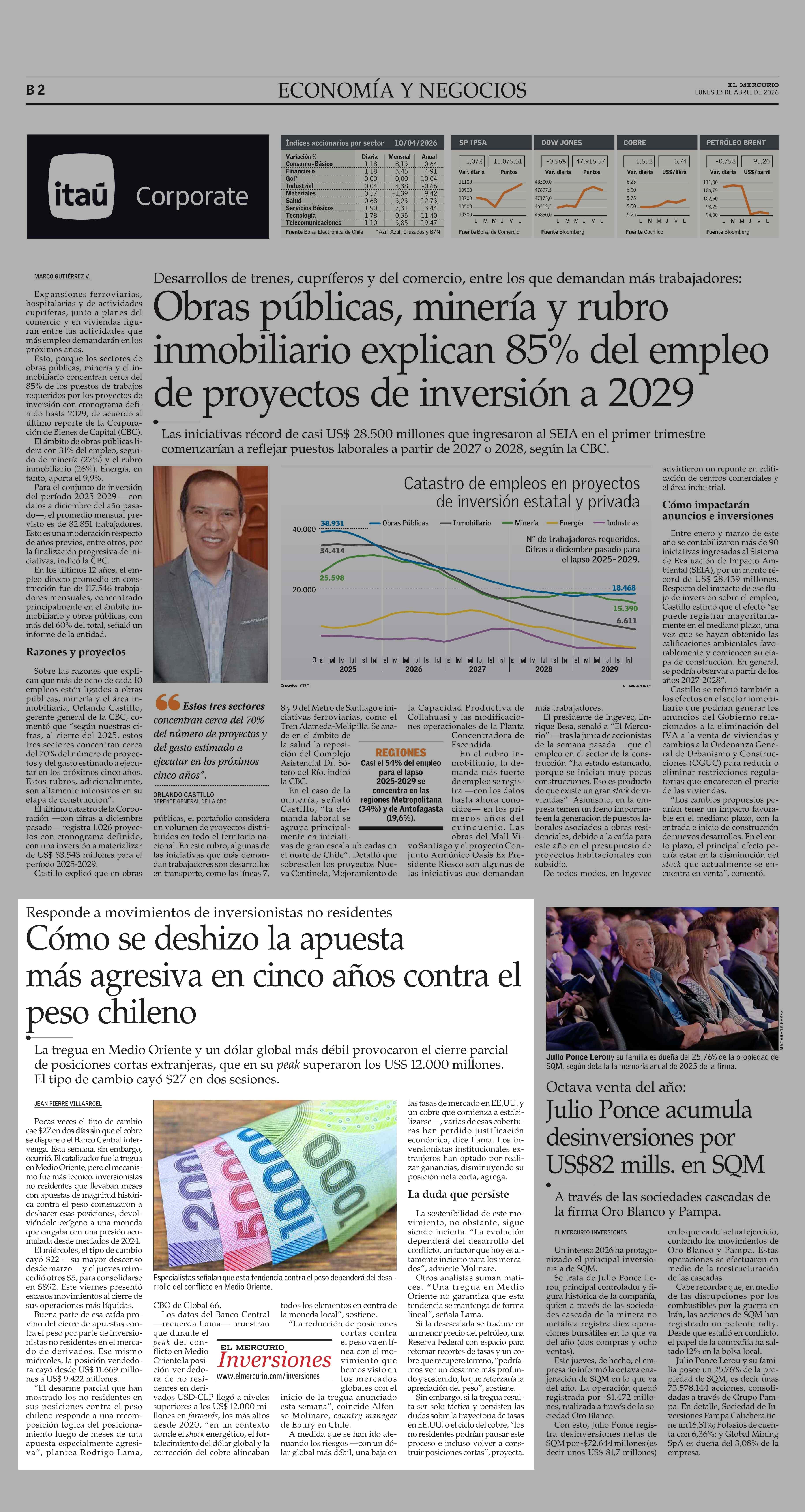 Cómo se deshizo la apuesta más agresiva en cinco años contra el peso chileno 13-04-2026 El Mercurio |