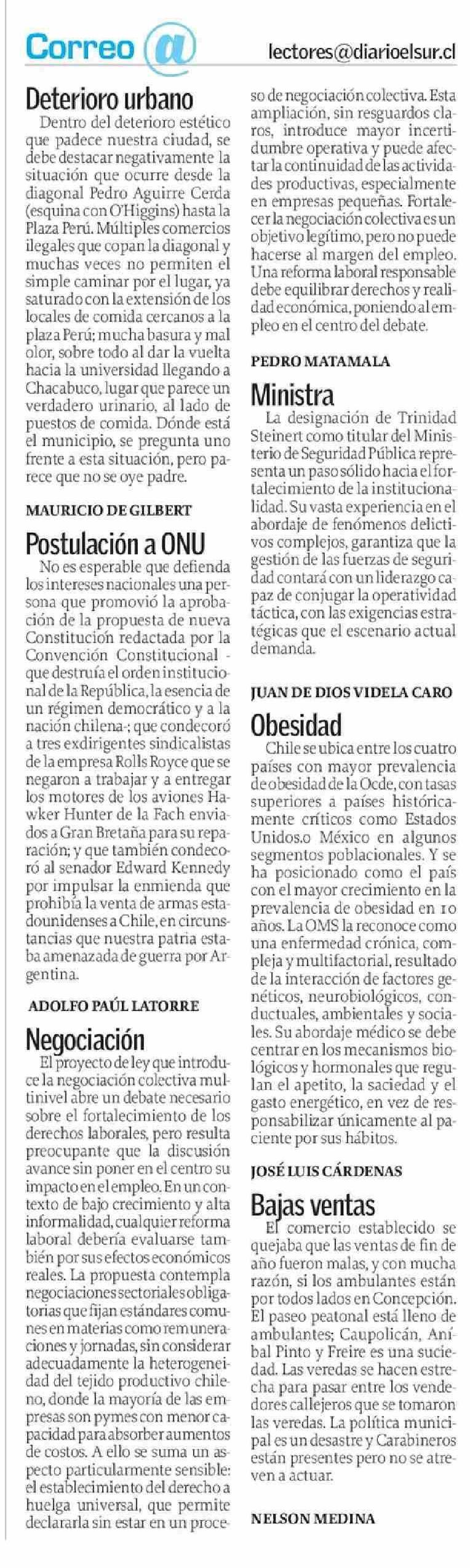 Cartas: Correo 07-02-2026 El Sur |
